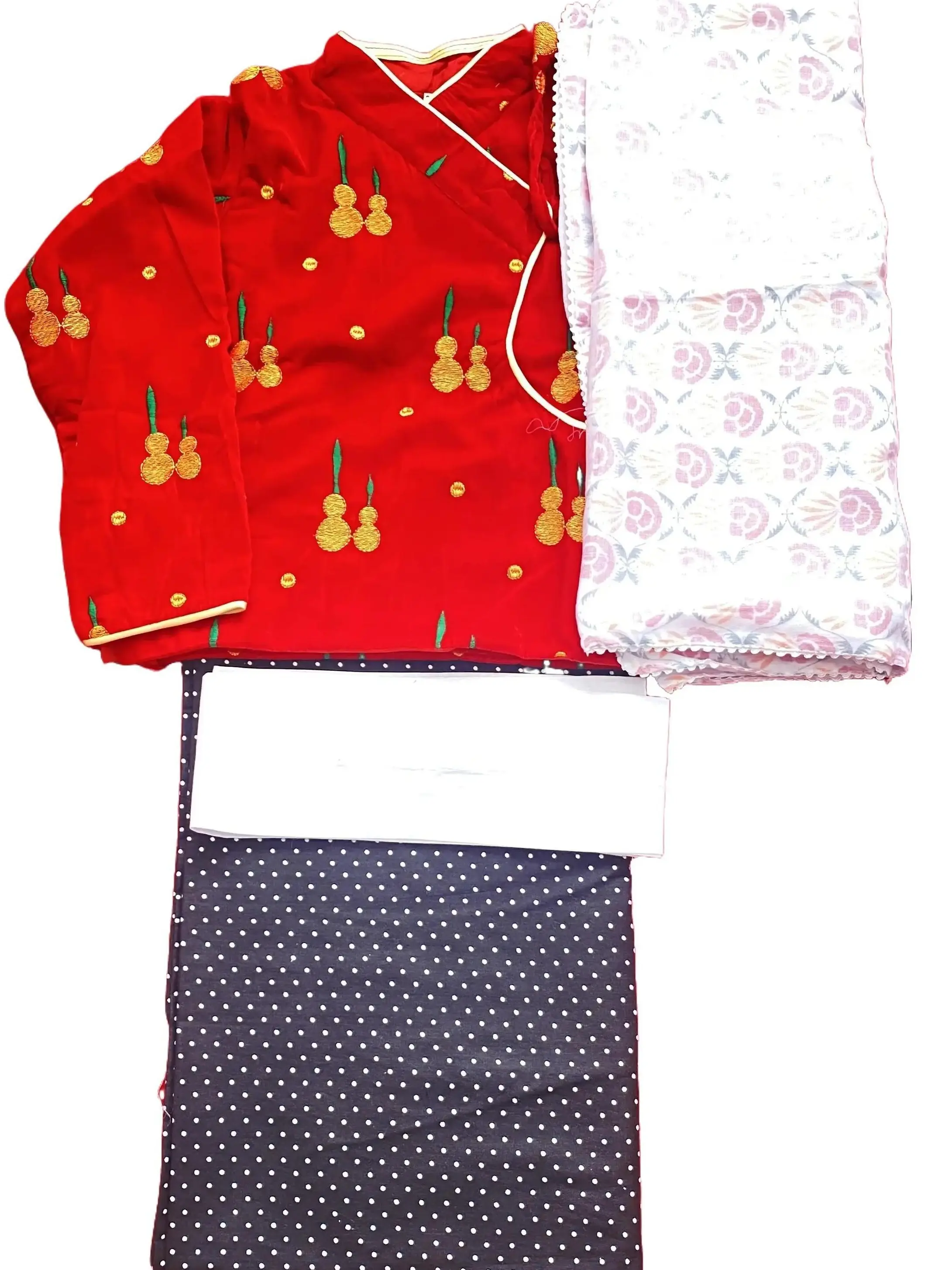 Experience the elegance of traditional Nepali attire with this beautifully designed 4-piece dress set. This set includes: