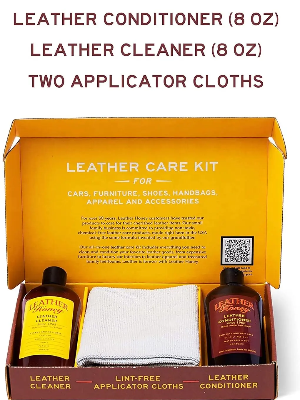 ·Includes: Cleaner, Conditioner, and 2 Cloths.