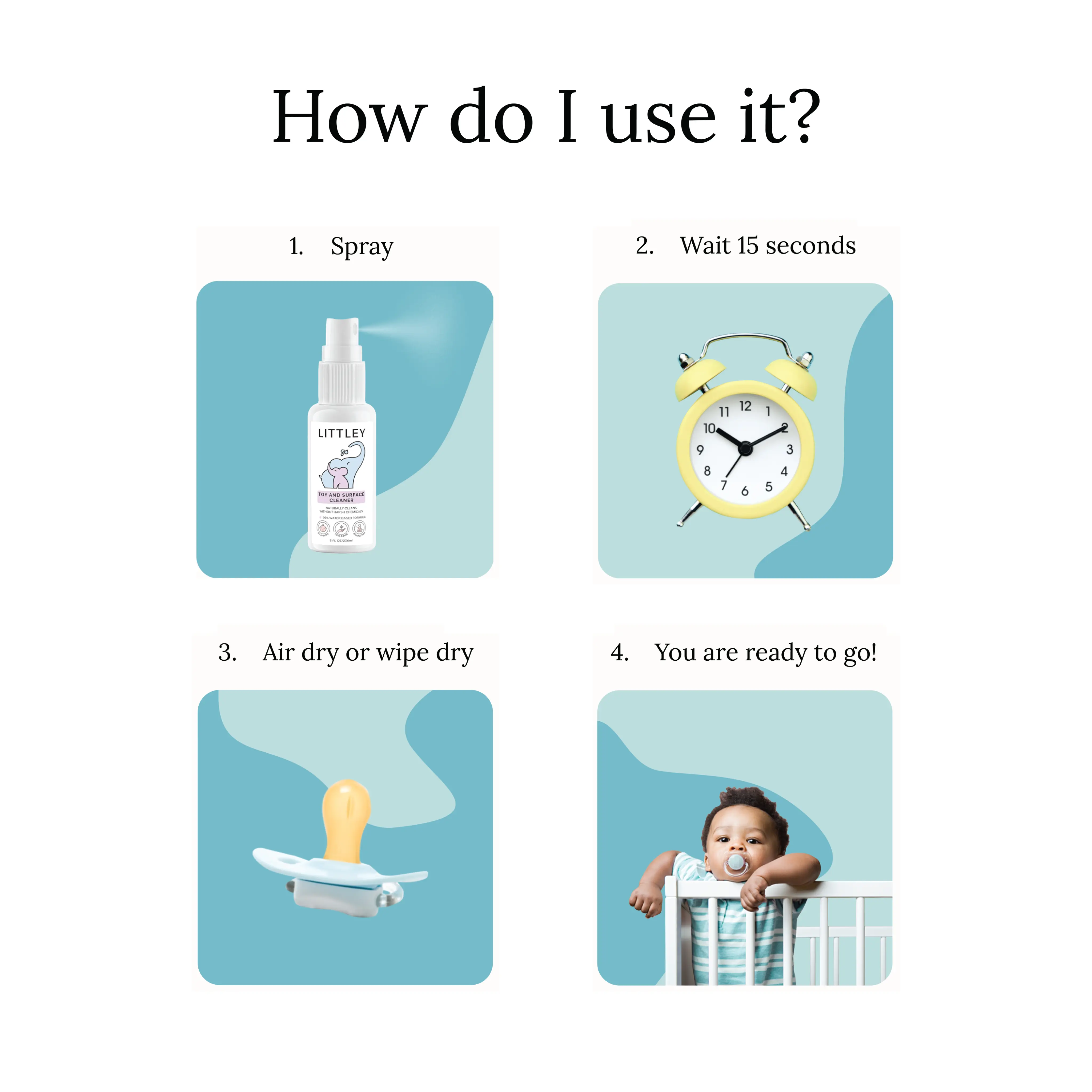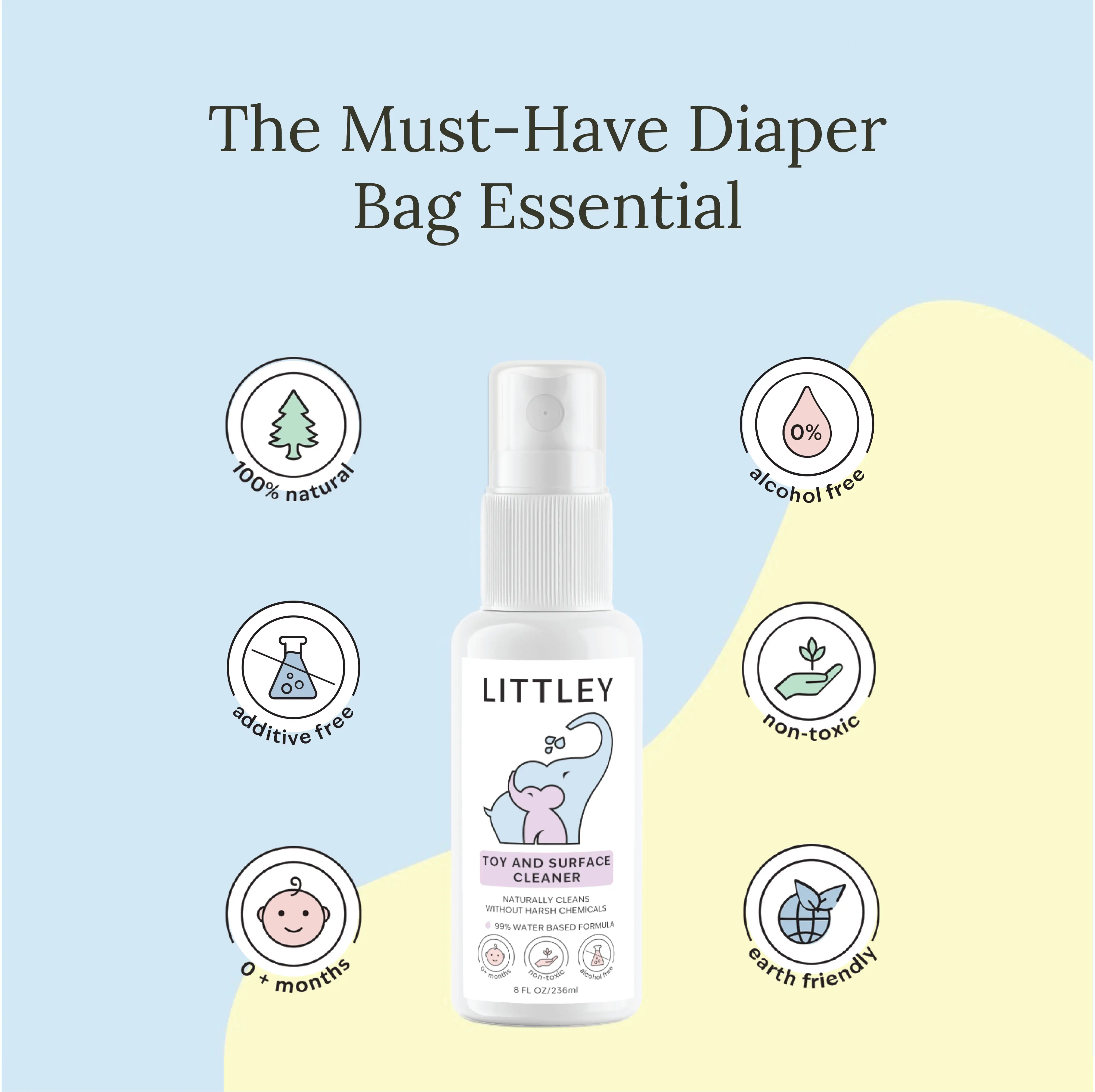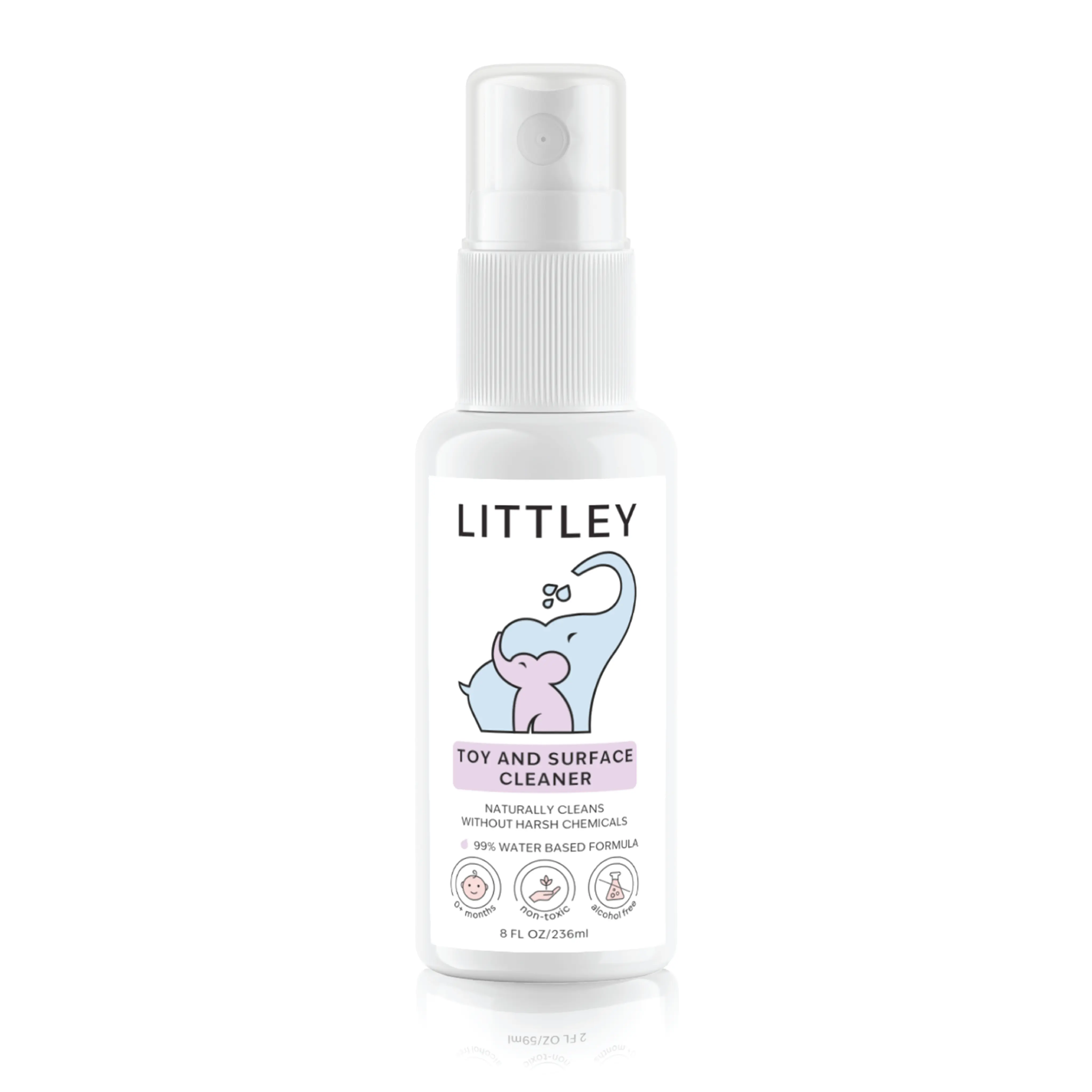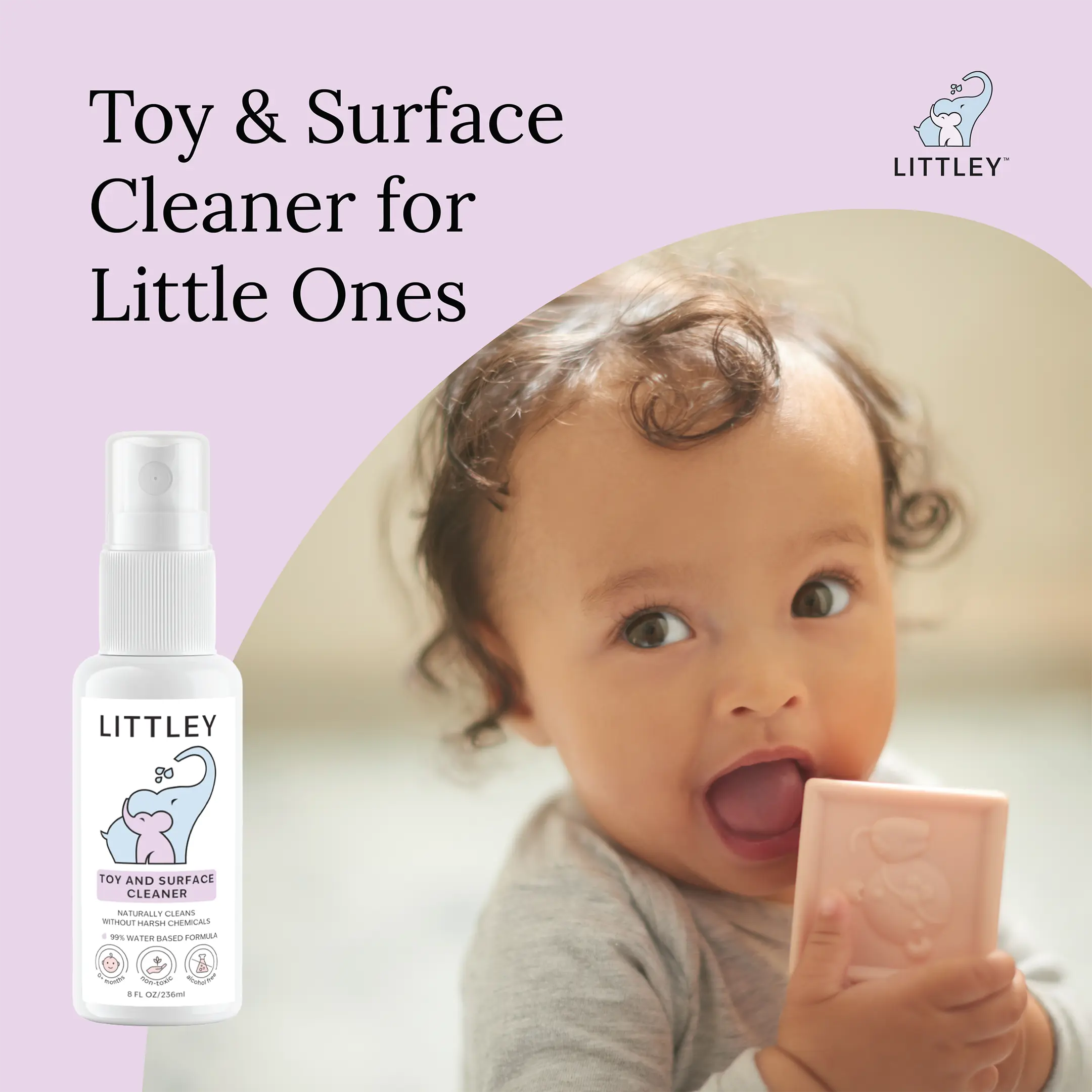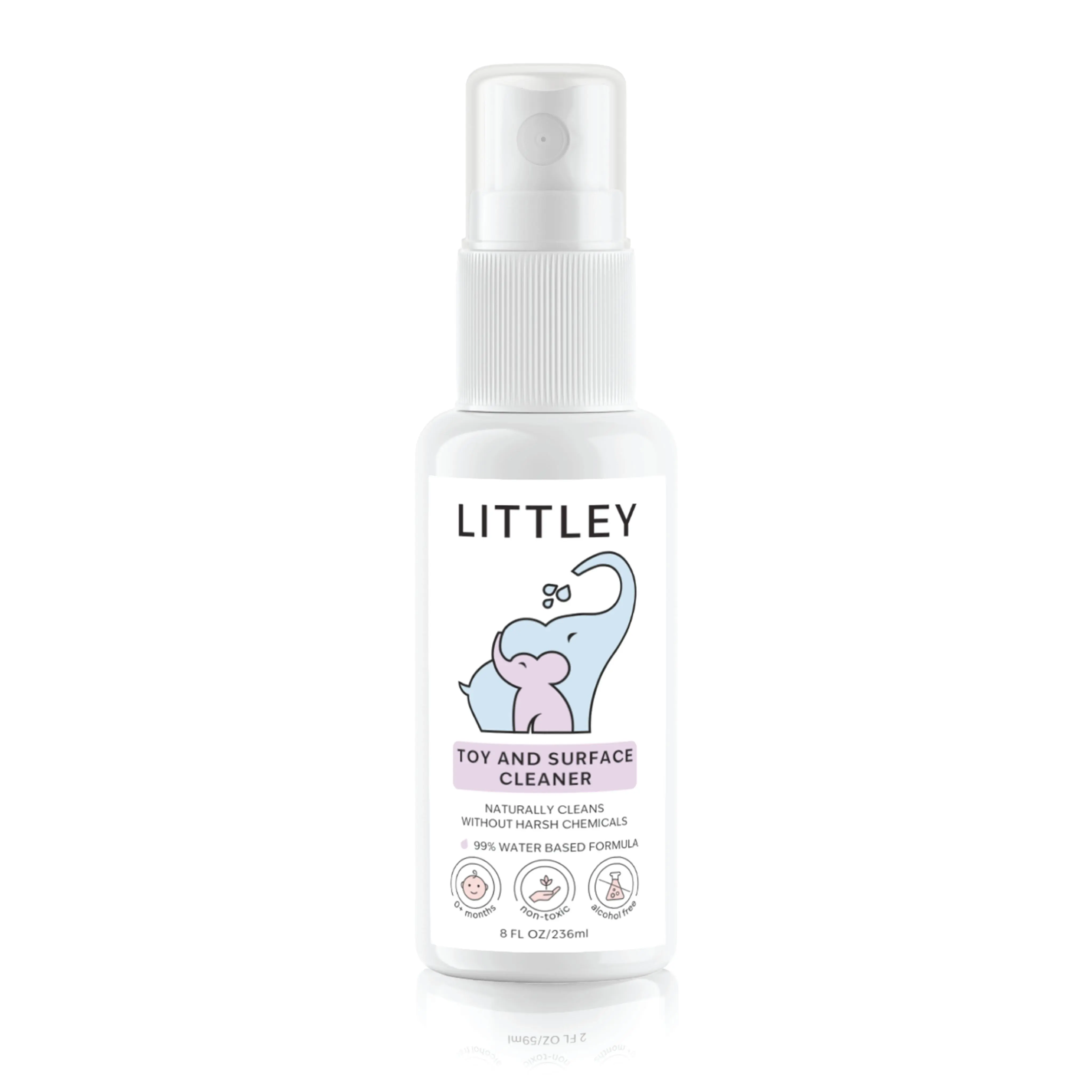 Keep your child's toys and surfaces clean and hygienic with the Littley Infant & Toddler Toy and Surface Cleaner. Enjoy the convenience of a natural antimicrobial formula that is both effective and easy to use. Manufactured by Think Smarter Products.