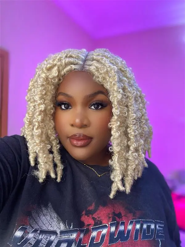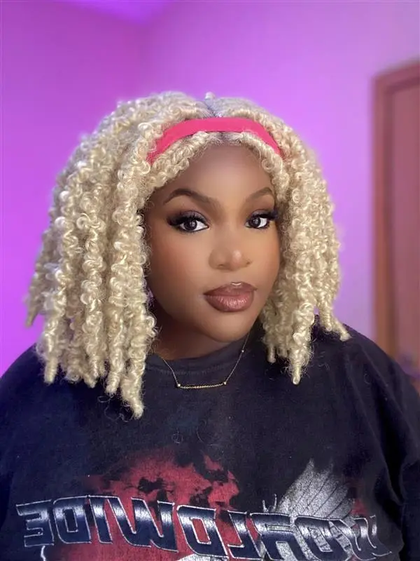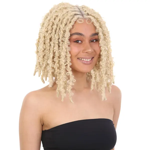 Daisy 12.5"" Bomb Butterfly Locs Wig with 4x5-inch HD Lace, Heat-resistant Synthetic Fiber, and Baby Hair for a Natural Look, (Light Blonde)