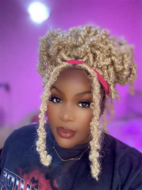 "Elegance knows no bounds with our Daisy Bomb Butterfly Locs Wig, a 12.5" marvel that seamlessly marries style and artistry. It's not just a wig; it's a work of art. Immerse yourself in the captivating charm of the 4x5 HD Lace, a graceful fusion with your skin that renders an effortlessly natural appearance. Crafted from heat-resistant synthetic fibers.