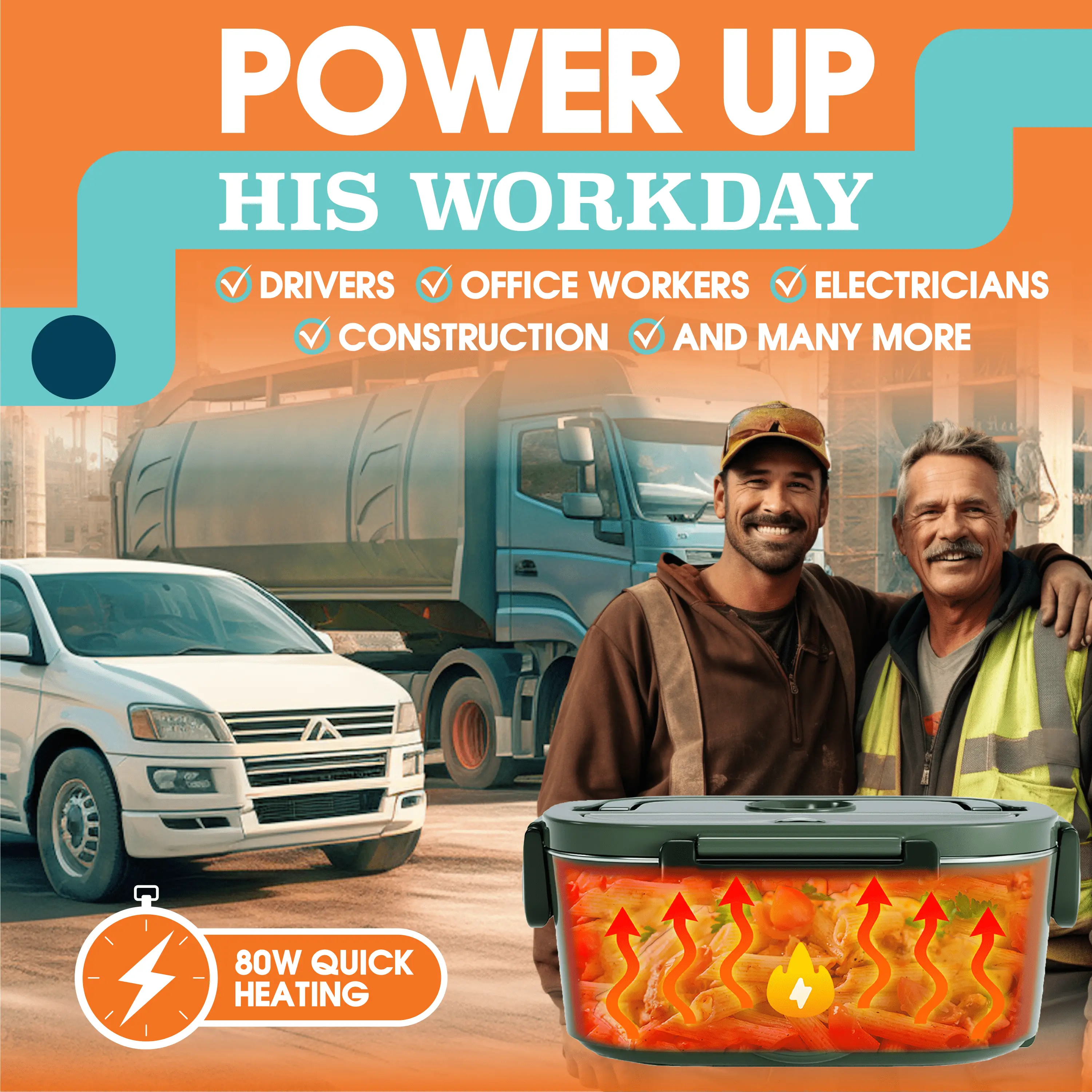 ·Multiple Power Options: Powered by 12V, 24V, or 110V power outlets, this lunch box can be used in your car, truck, office, or home.