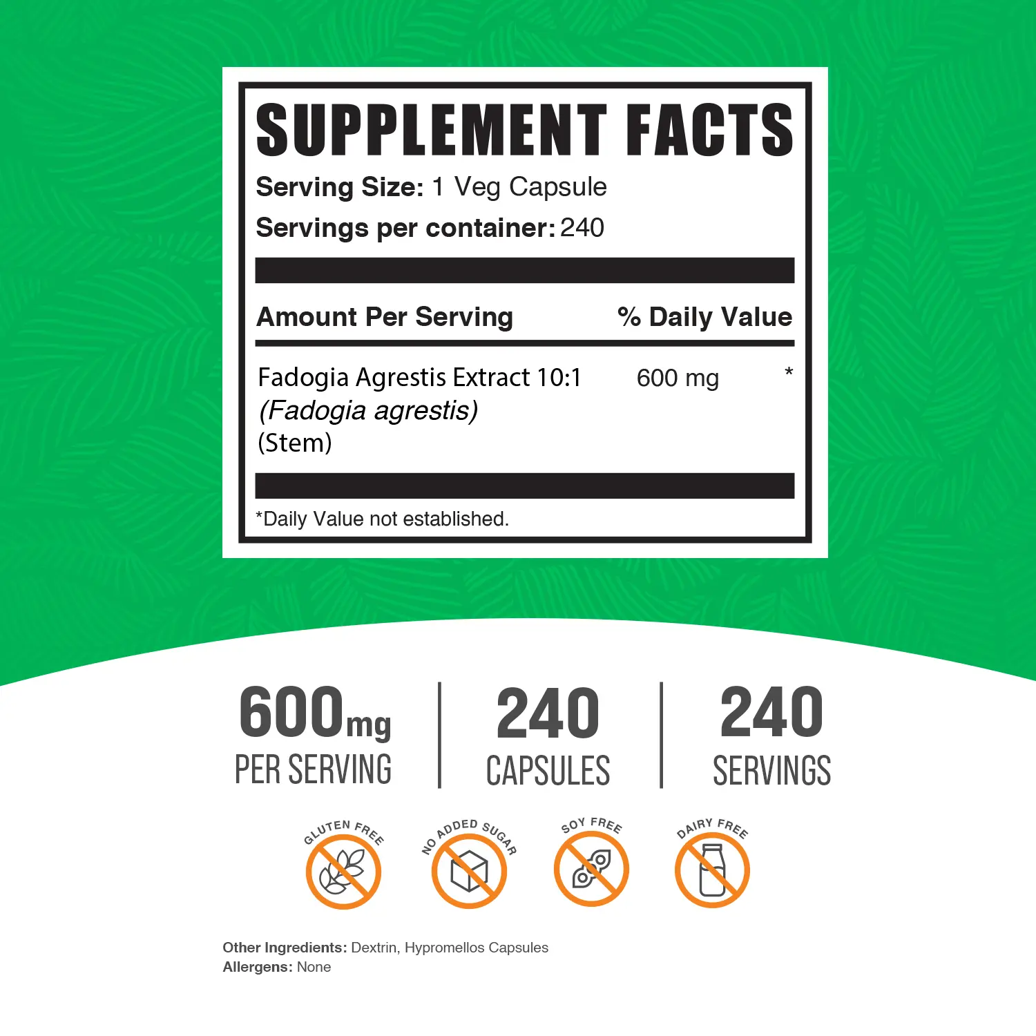Other Ingredients: Dextrin, Hypromellose Capsules