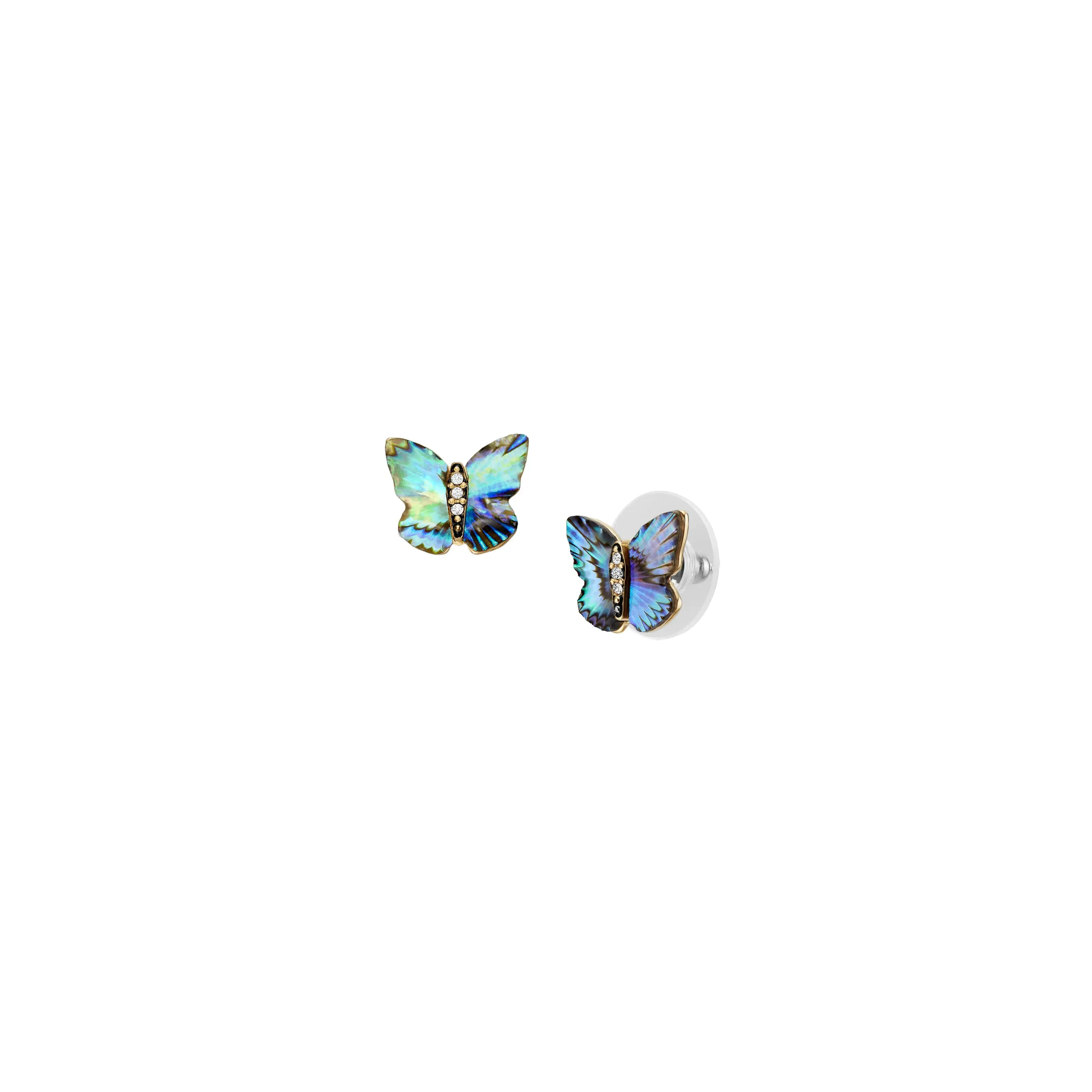 Symbolizing confidence and transformation, these beautiful earrings feature elegant butterflies crafted from genuine abalone shell with a textured finish and clear crystals.