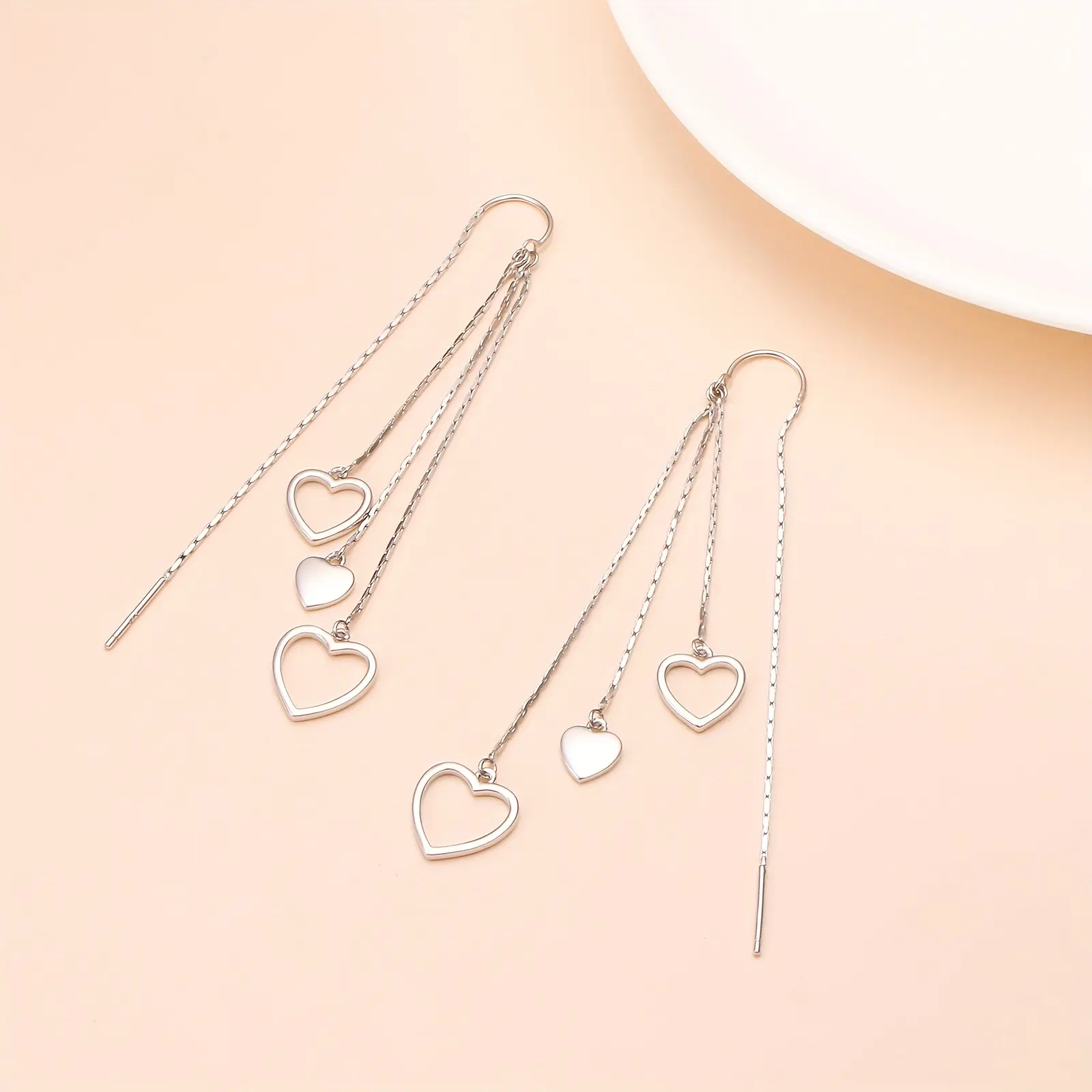 Sterling Silver Threaded Earrings Heart Tassel Dangle Drop Long Chain Earrings Jewelry Gifts For Women