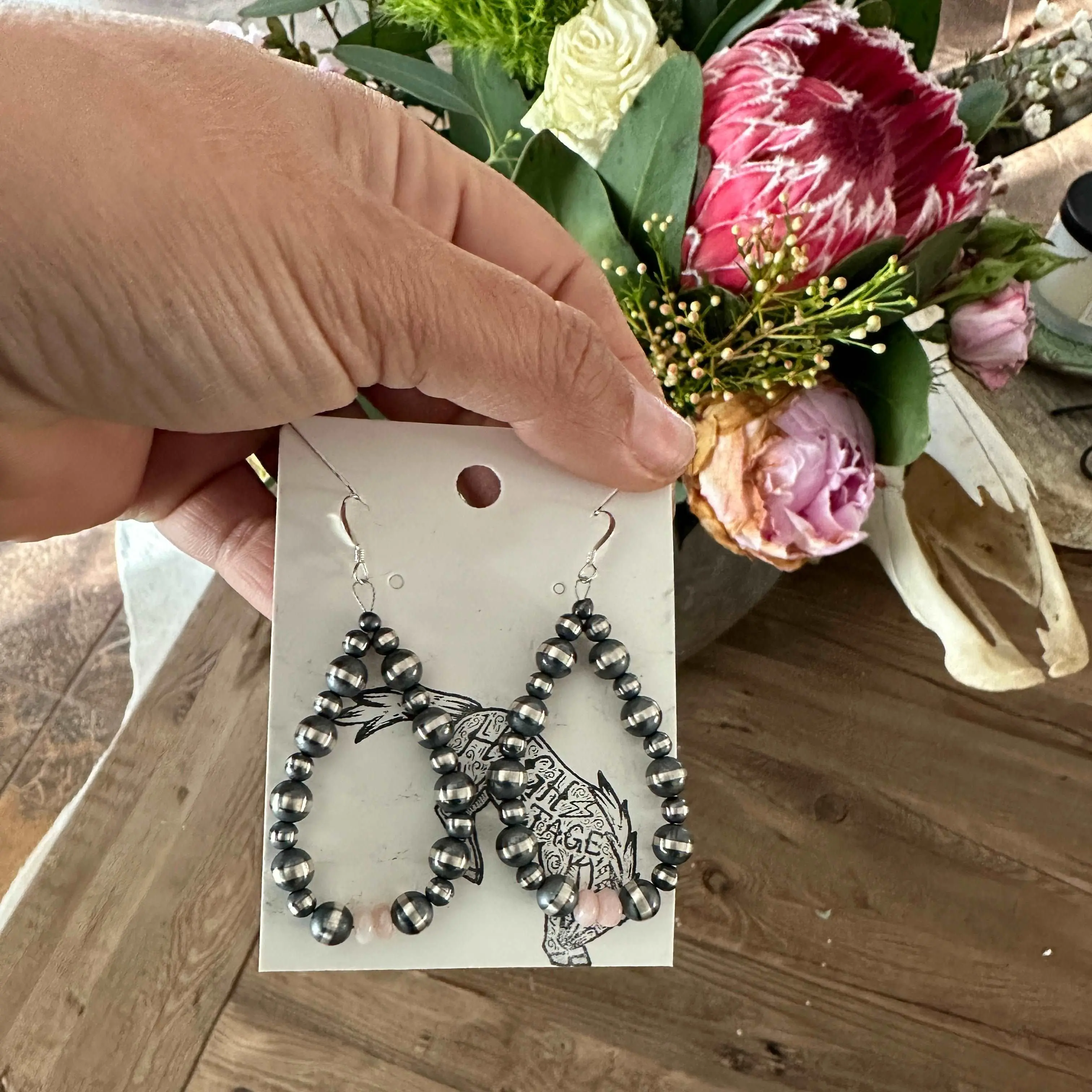 Add some elegance to your outfit with these Navajo beauties! Made of sterling silver pearls and pink opal beads, these teardrop hoop earrings will effortlessly elevate your style. Dress them up or down for a versatile look that is sure to turn heads!