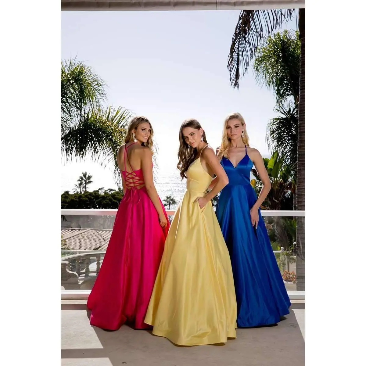 Juliet 230 Stylish Back Long A-Line Satin Prom Dress with Pockets