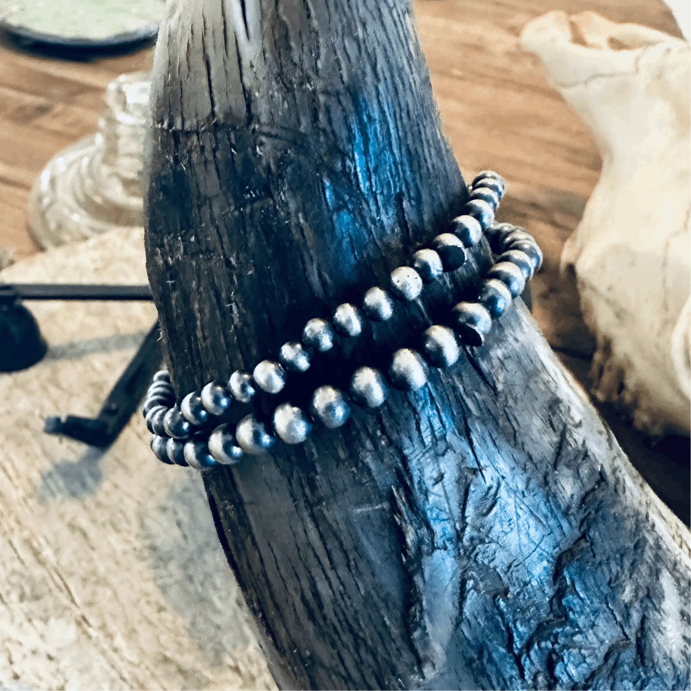 Perfect for stacking with other bracelets, this Navajo sterling silver stretch bracelet is a cute, versatile, and quick addition to any outfit. Dress them up for a night out or wear them casually for a day of errands.