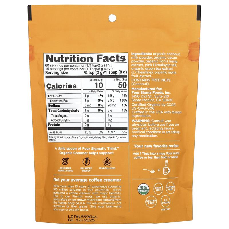 5. Four Sigmatic Think Organic Creamer, Dairy Free, Cacao Coconut, 4.23 oz (120 g)