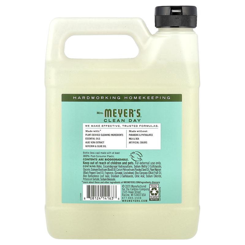 Mrs. Meyers Clean Day Hand Soap Refill, Basil, 33 fl oz (975 ml)