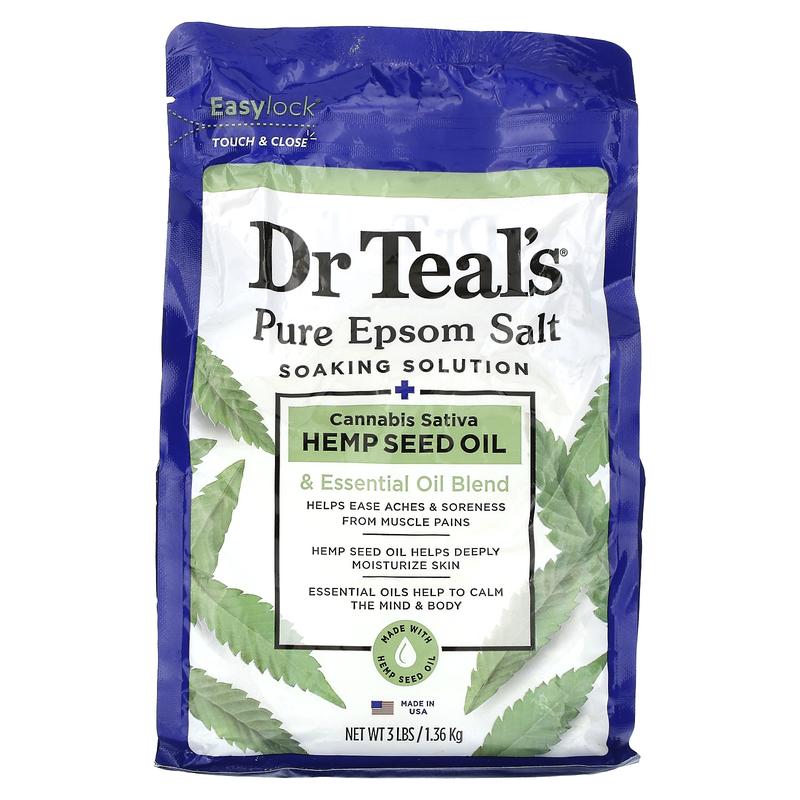 5. Dr. Teal's Pure Epsom Salt, Soaking Solution, Cannabis Sativa Hemp Seed Oil, 3 lbs (1.36 kg)