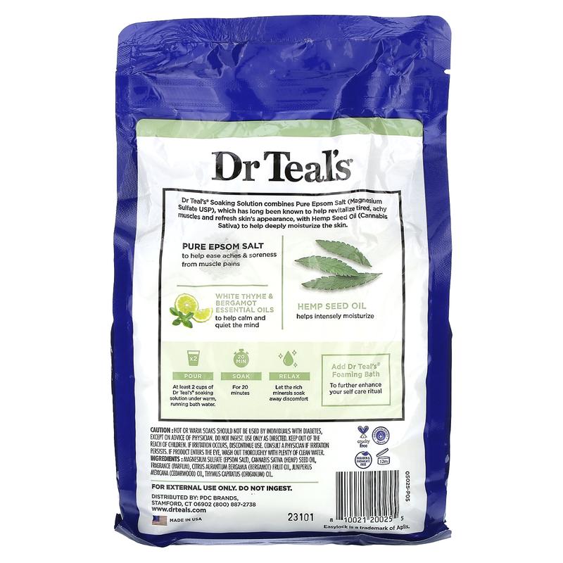 Dr. Teal's Pure Epsom Salt, Soaking Solution, Cannabis Sativa Hemp Seed Oil, 3 lbs (1.36 kg)