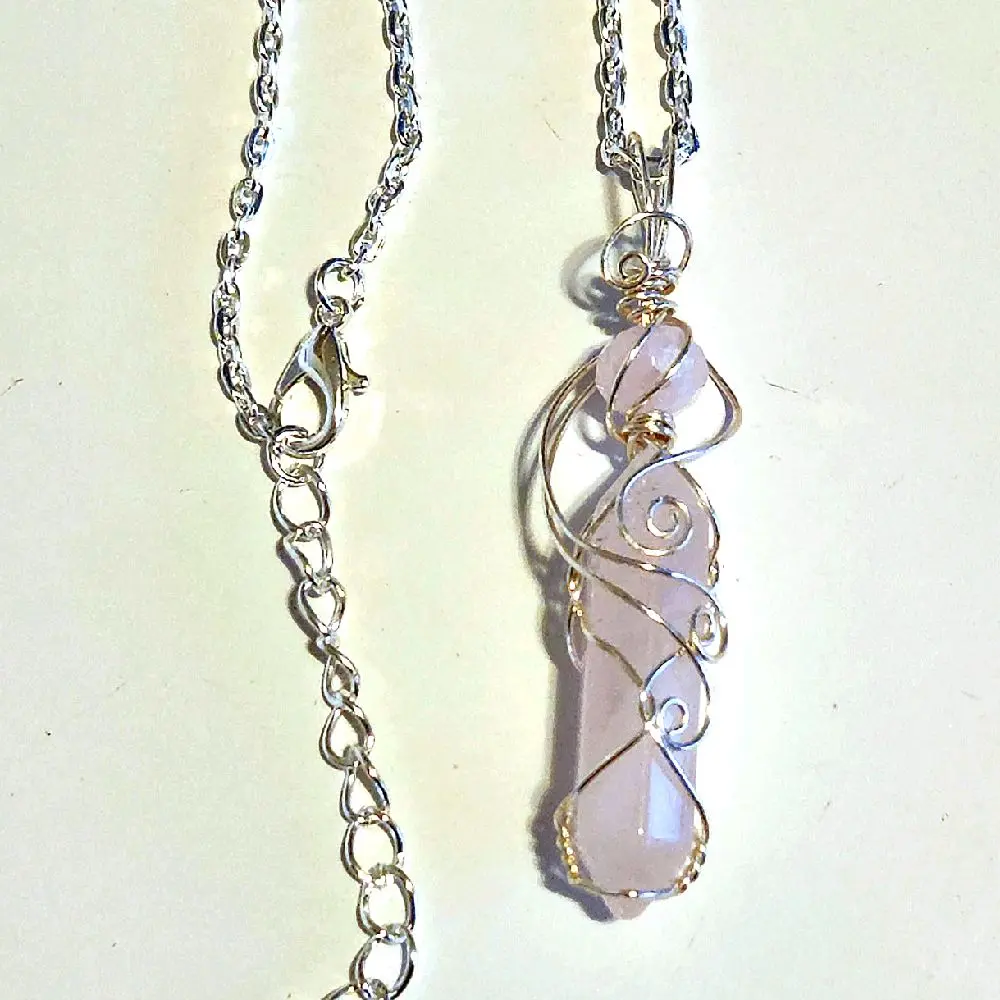 * Rose Quartz Crystal: The necklace showcases a hand-picked Rose Quartz crystal with a matching pink crystal bead on top, adding a touch of elegance.