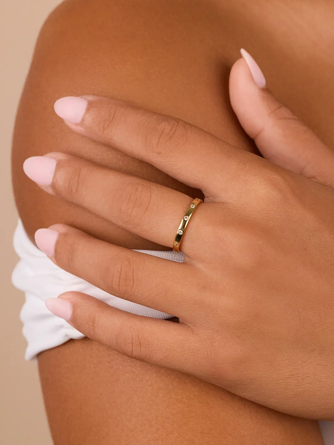 Very pretty 🤩 High quality with a very nice finish. It's the perfect stacking ring! I wear it daily, shower and sleep with it on. It doesn't tarnish.