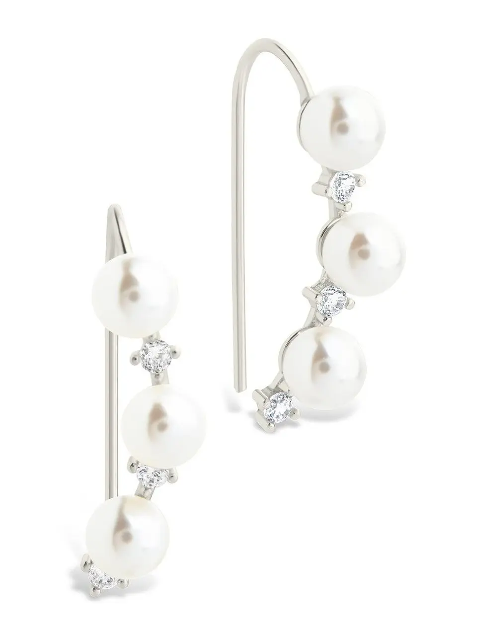 Sterling Silver Siena CZ & Pearl Threader Earrings