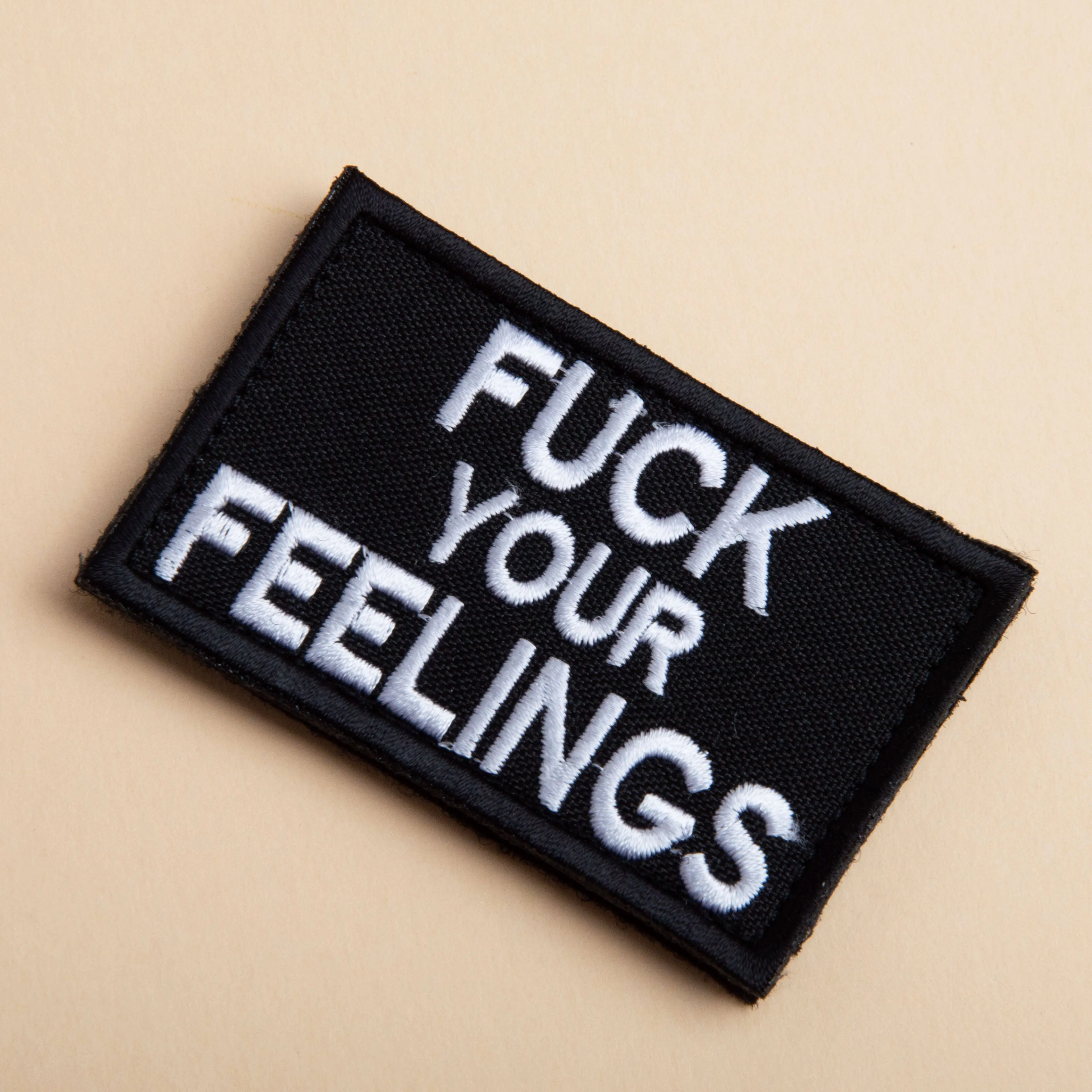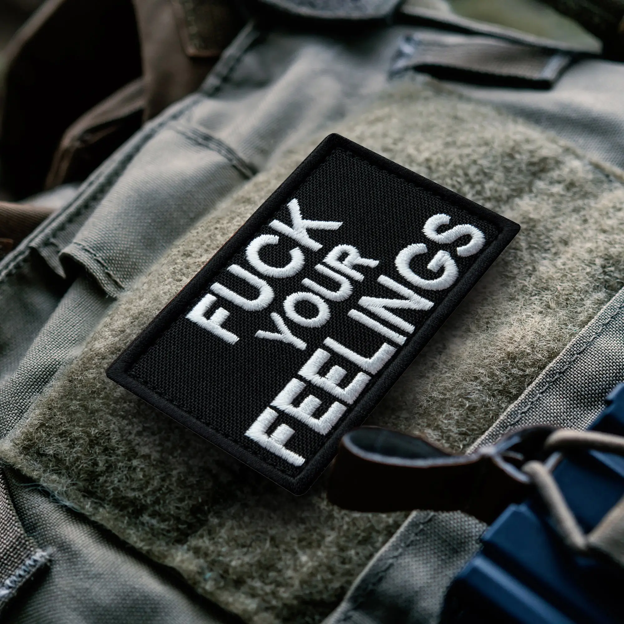 Embrace boldness with this set of two "Fuck Your Feelings" patches, designed to make a statement wherever you go. Crafted from premium materials and featuring durable backing, these patches combine function and style.