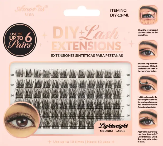 The DIY Lash Extensions #13 is created a unique and versatile lash combo with these DIY Lash Extensions. This collection is designed to customize your style for any occasion. Each cluster features high quality faux mink and extra comfortable band for up to 10 uses. Best Paired with Amorus Glue & Seal.