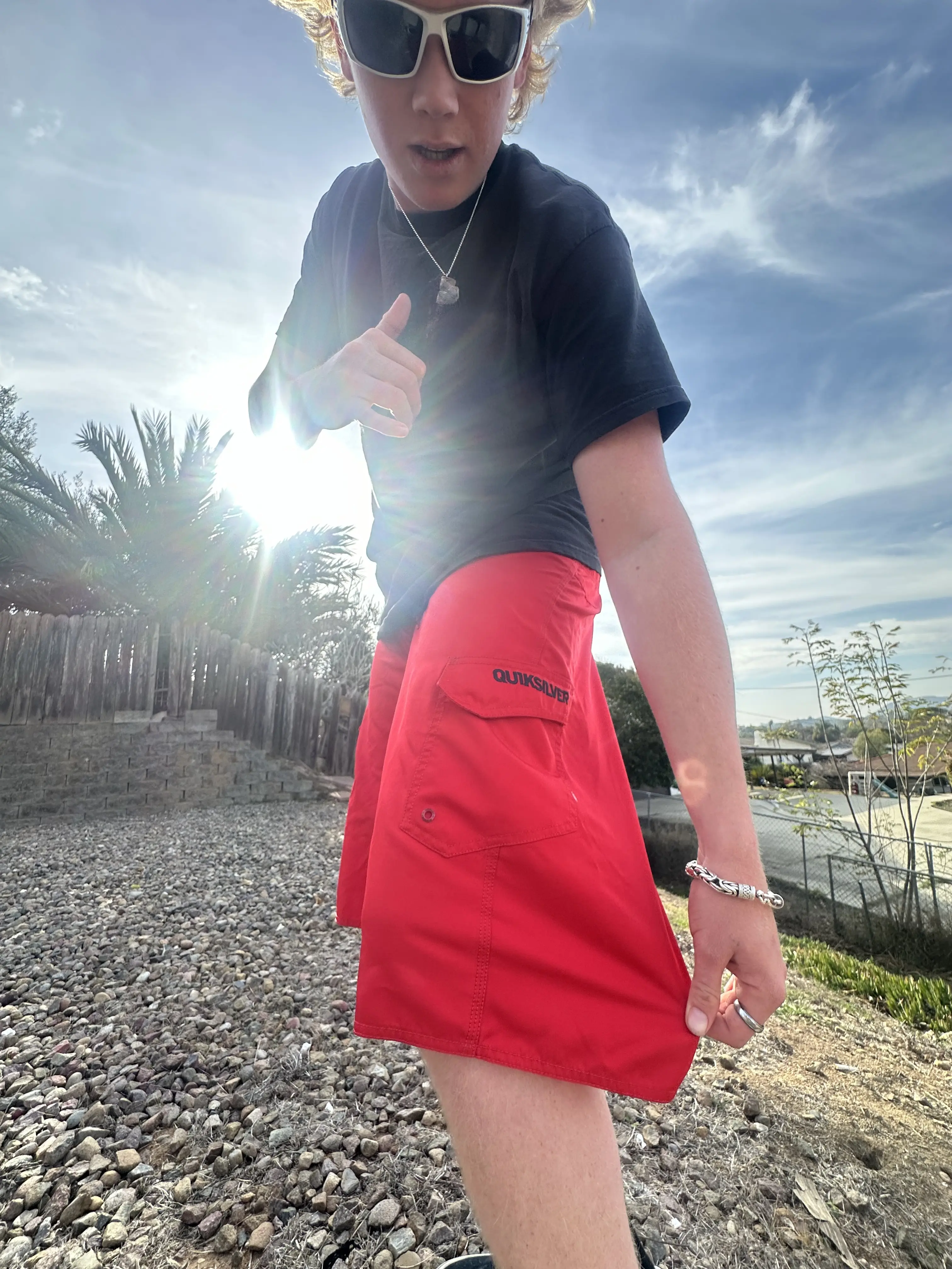 Red quicksilver board shorts