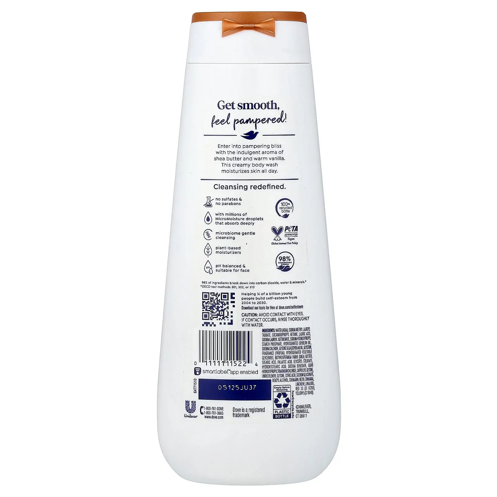 5. Dove Pamper Body Wash, Shea Butter + Vanilla, 20 fl oz