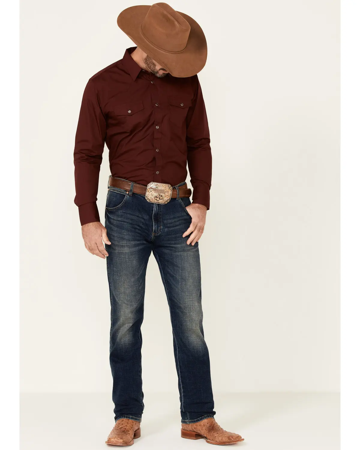 Gibson Trading Co Men's Basic Solid Long Sleeve Pearl Snap Western Shirt - Gmba21w100-Burg