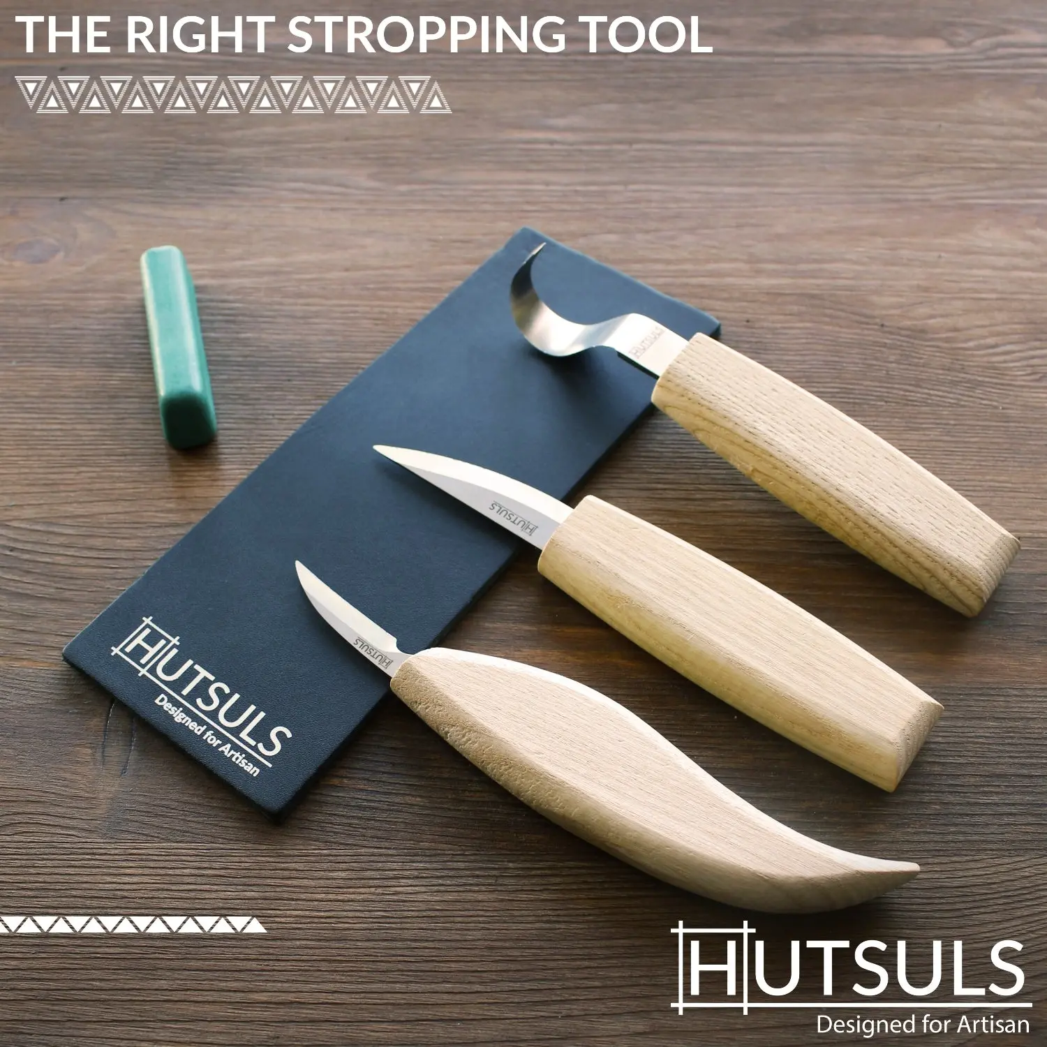 Keep all your knives extra honed and sharp. Add the HUTSULS Brown Leather Strop with Green Compound to your cart NOW!