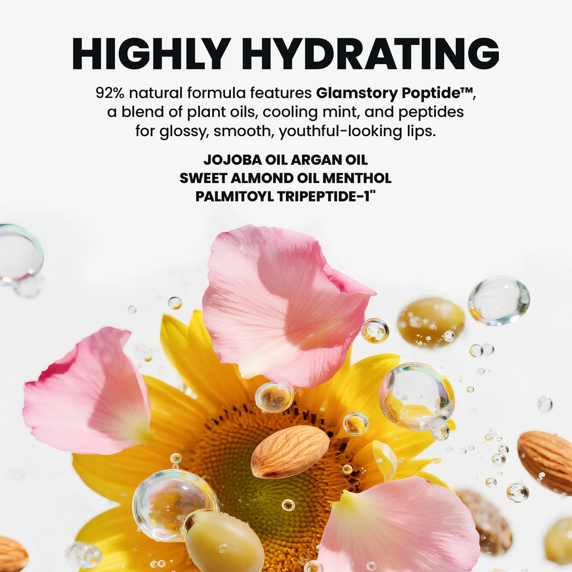A next-gen lip gloss infused with Glamstory Poptide peptides that go beyond shine—designed to hydrate, smooth, and visibly plump over time.
