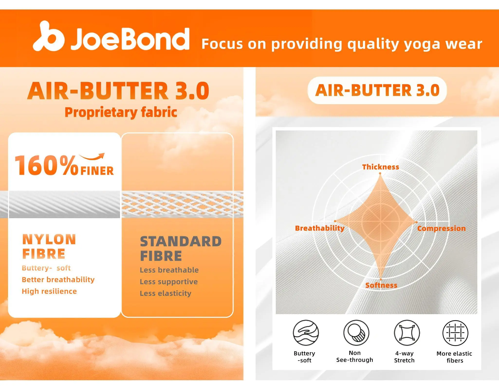 【Air-Butter High Stretch Fabric】:Crafted with 160% finer fibre than standard fibre and buttery- soft handfeel Featuring high stretch capabilities, provides excellent flexibility, perfect fora fullrange of motion for all your activity.