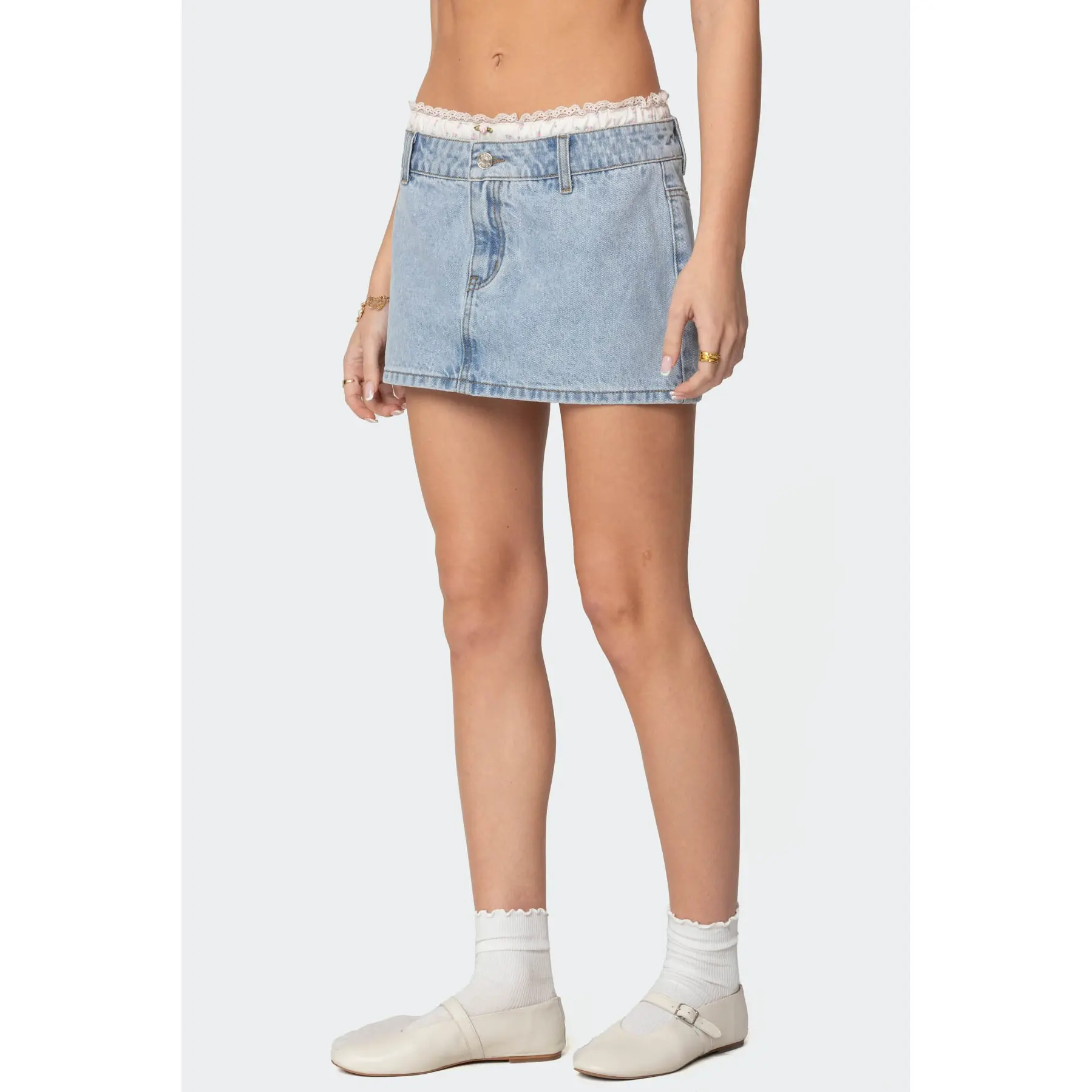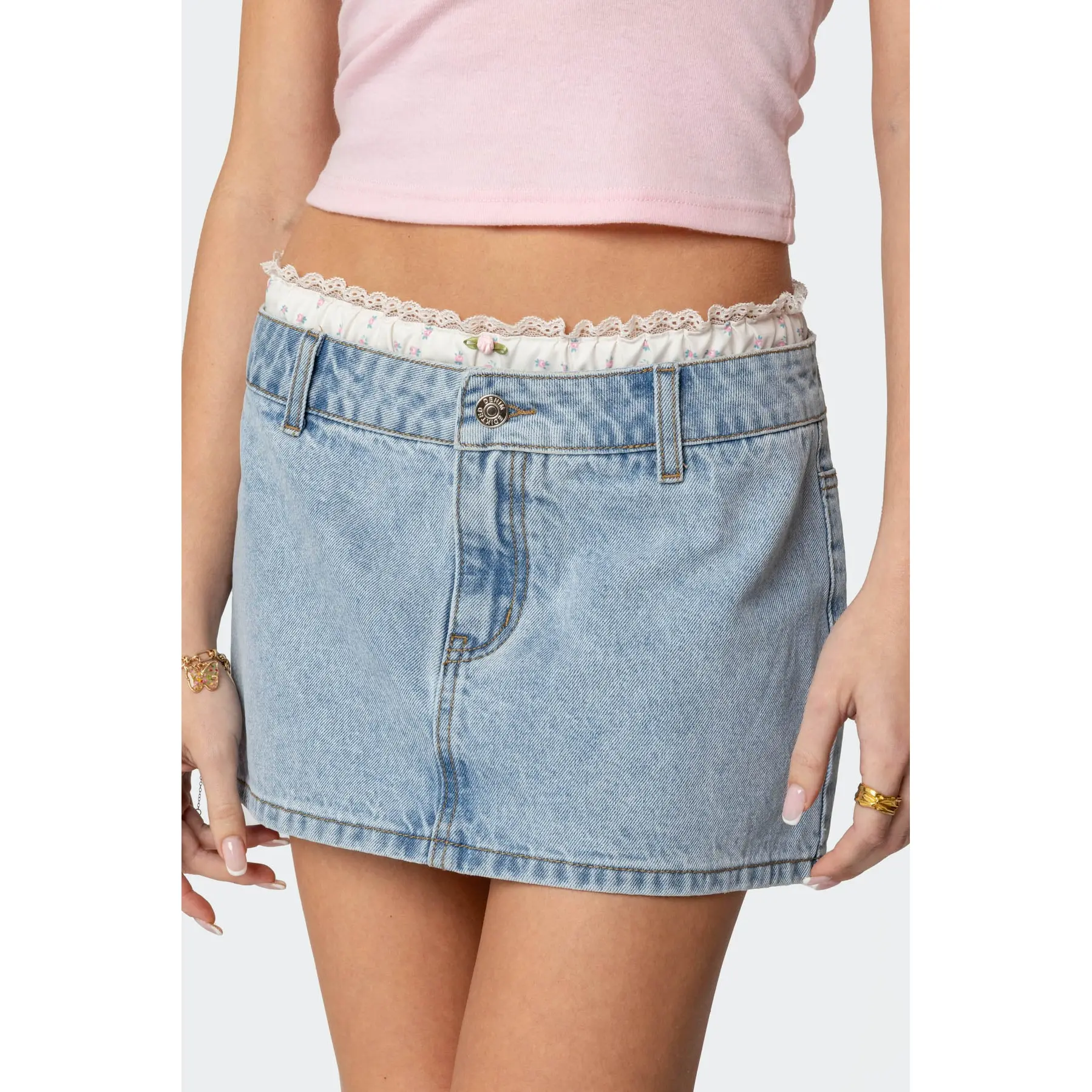It’s a nice thick denim material. belt feels a bit cheap but i think it looks nice without it, and i’ll prob use a different one. fit is great- im 5’2, 150 pounds and i got a large. the shorts under are good coverage so i wont flash anyone even though its super short (which is what i wanted)