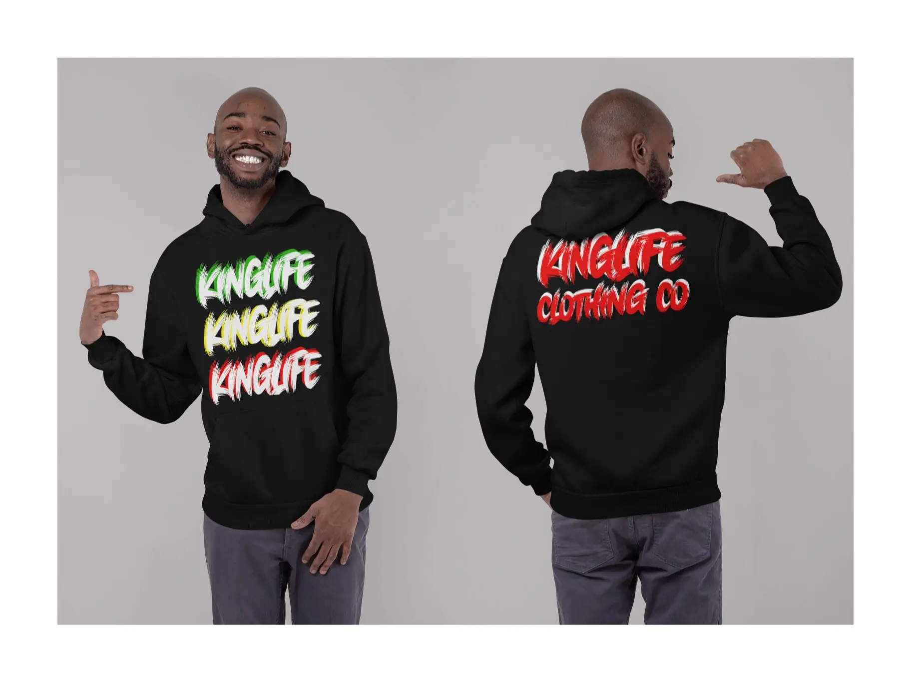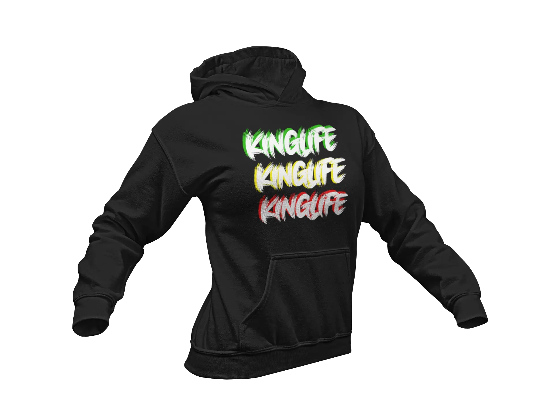 This KingLife Rasta Edition Hoodie is designed for bold streetwear lovers who want to stand out. Featuring a vibrant Rasta-inspired "KingLife" front print and a bold KingLife Clothing Co. back design, this hoodie is a must-have for street fashion enthusiasts.