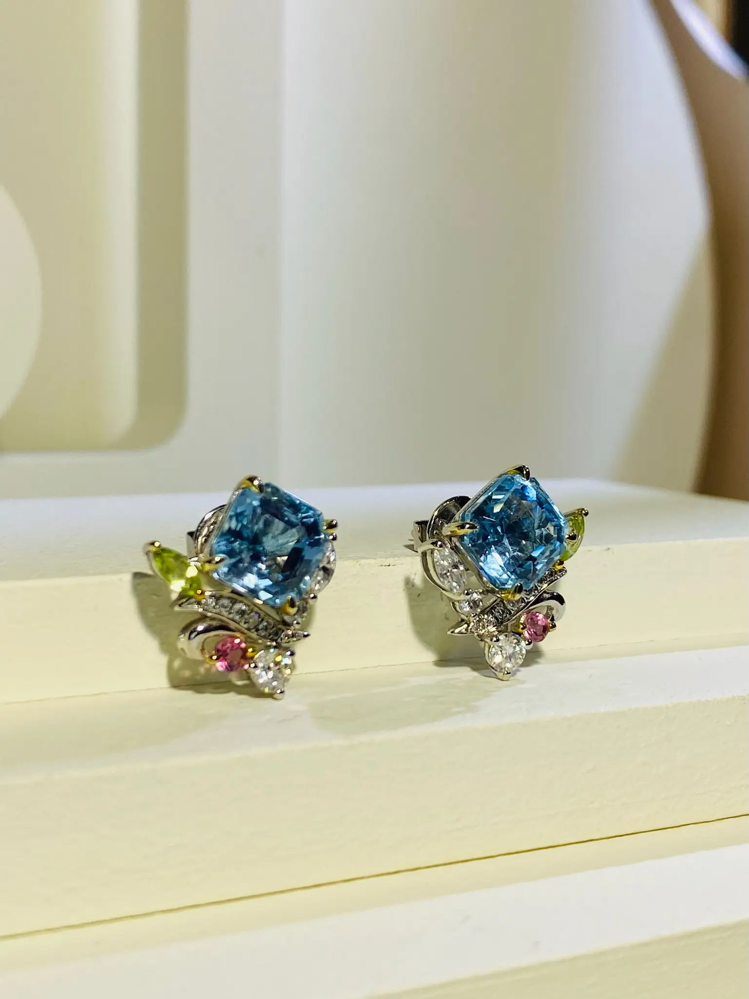 Blue Topaz 8.36 Carat Assorted Cut Tri Color Earring Studs - Elegant Design for Everyday Wear