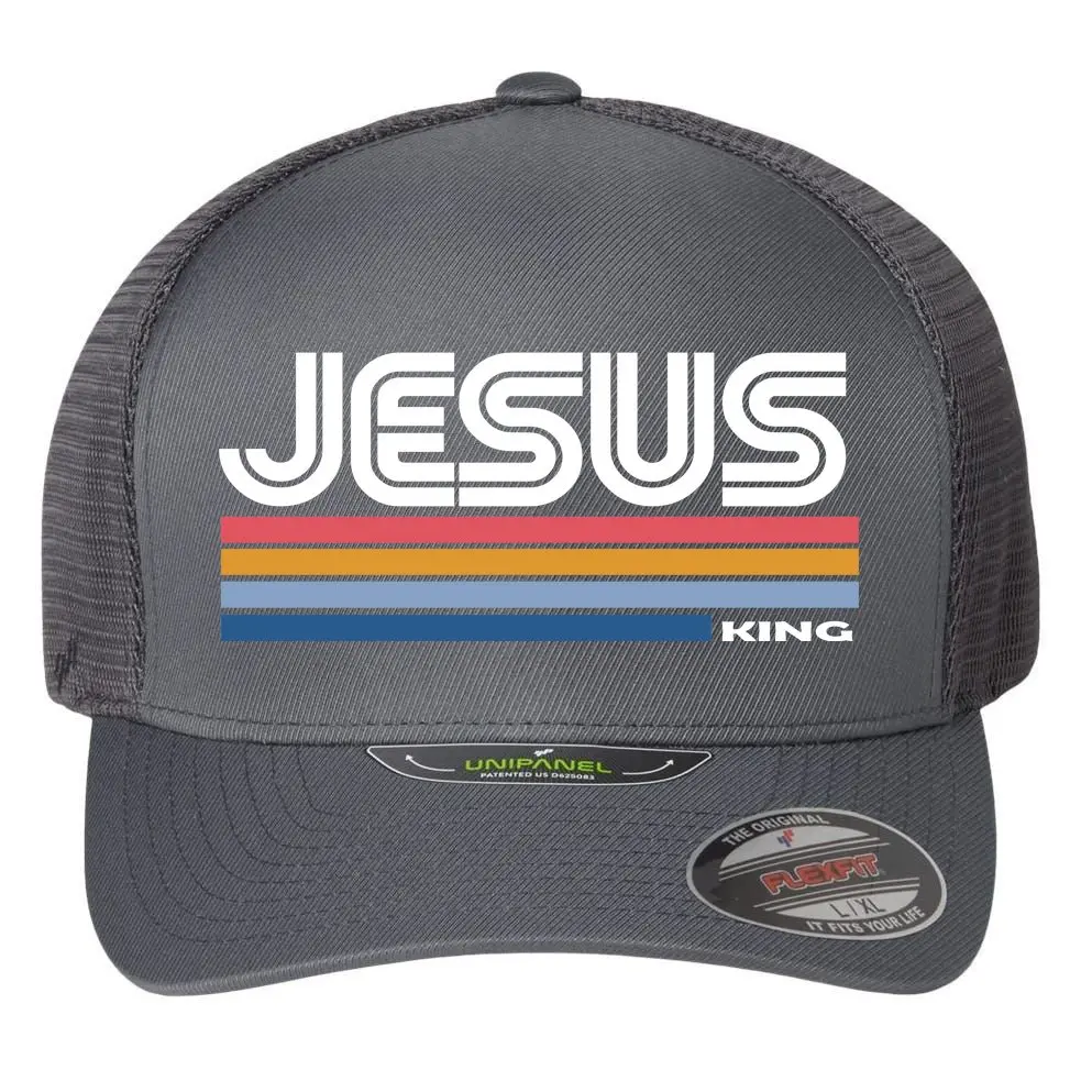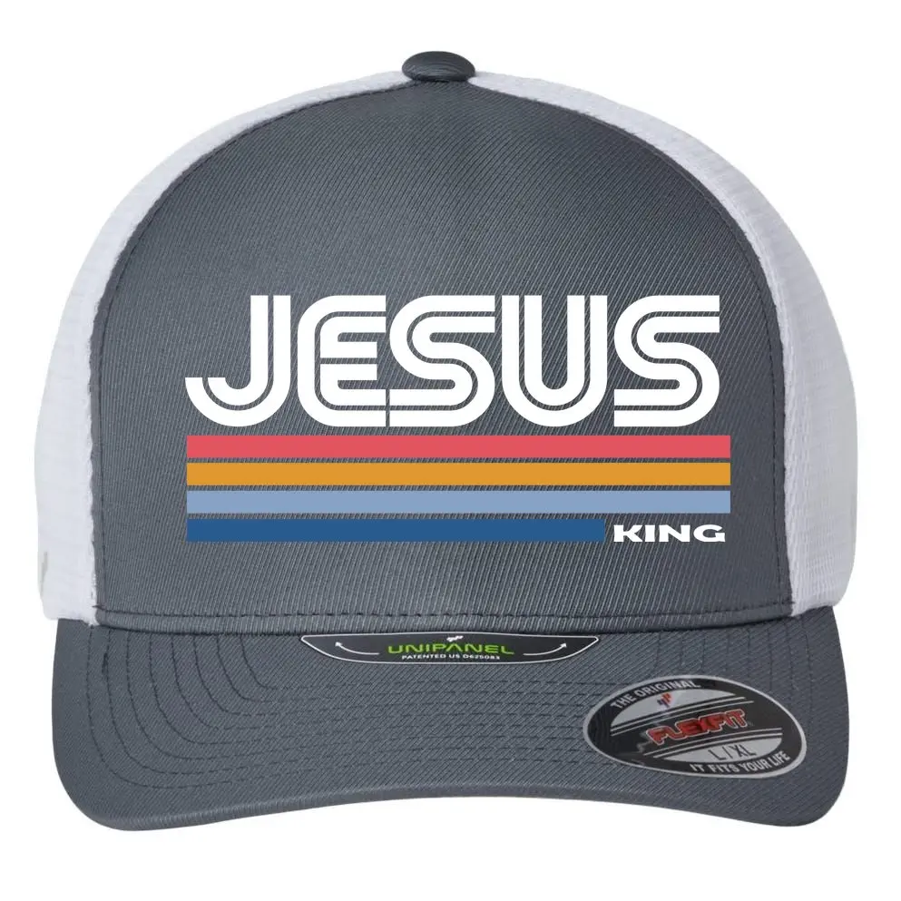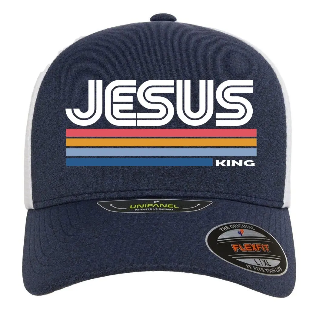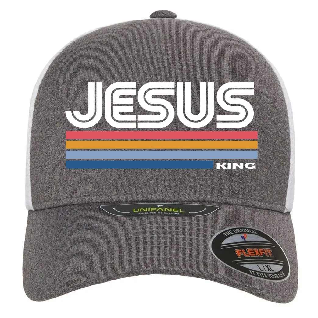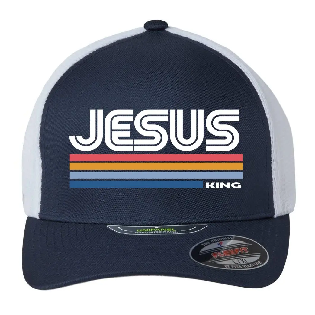 Retro Jesus King Colorful Christian Catholic Kings of Kings Lord of Lords Flexfit Trucker Hat Cap