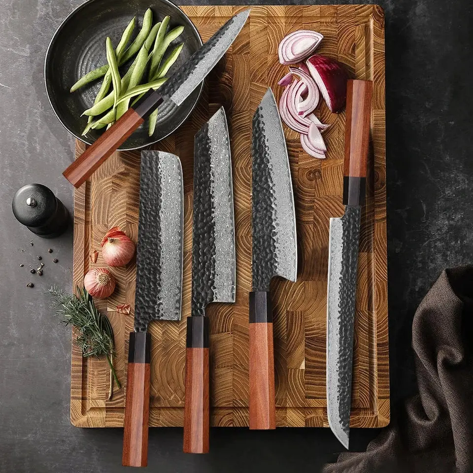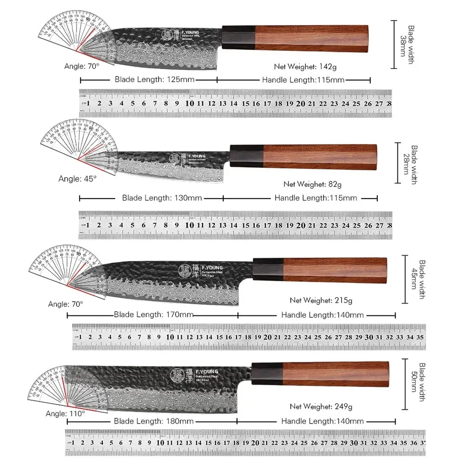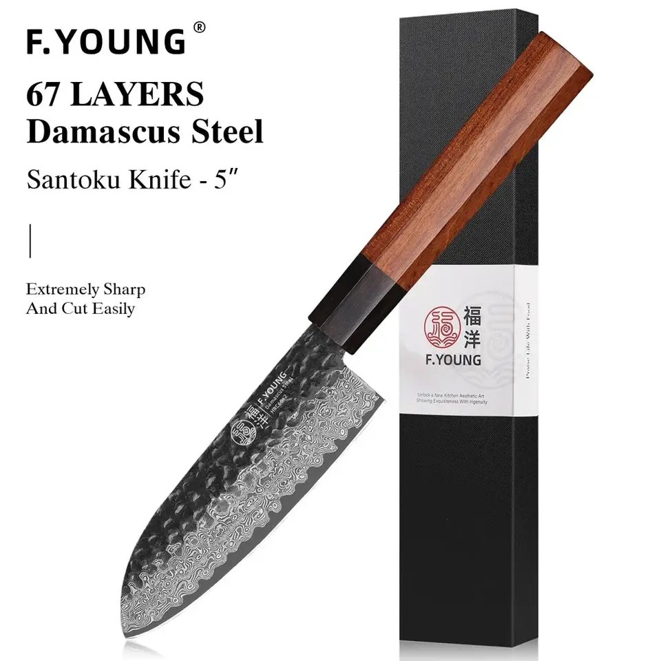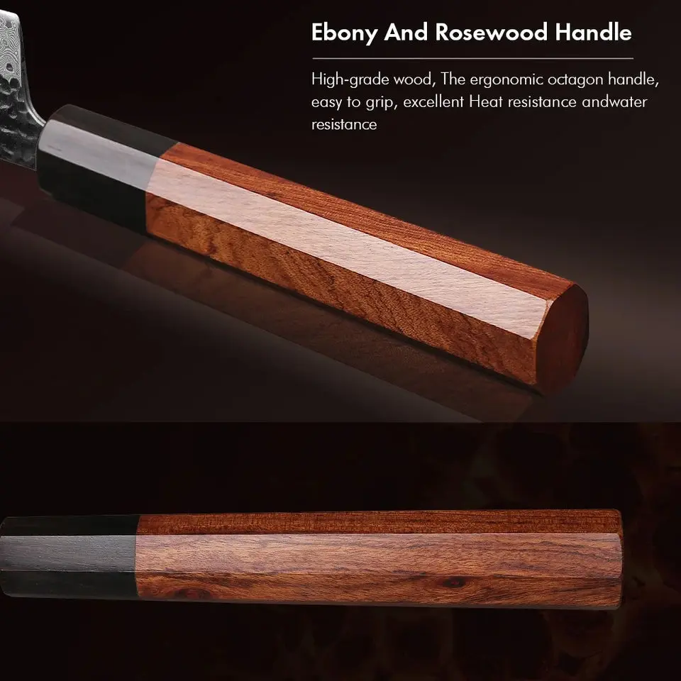 F.YOUNG Japanese Hand Forged Chef Knife Damascus Steel Kitchen Knives Vegetable Meat Slicing Sashimi Utility Cooking Utensils with Rosewood Octagonal Handle