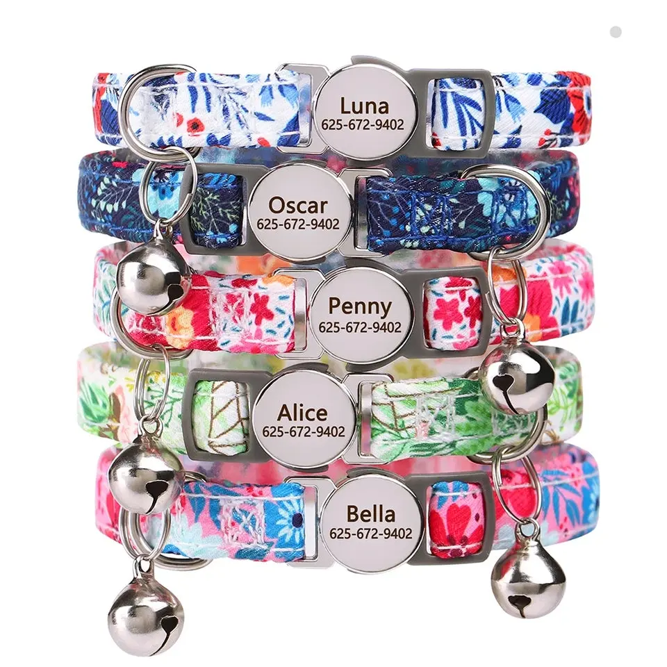 Personalized Printed Cat Collar Adjustable Kitten Puppy Collars With Free Engraved ID Nameplate Bell Anti-lost Cats Collars