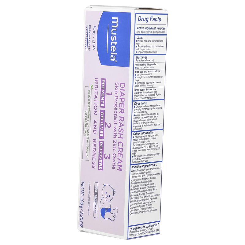 Mustela Baby-Child, Diaper Rash Cream, Fragrance Free, 3.8 oz (108 g)