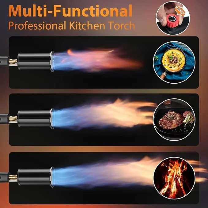 Propane Cooking Torch, Torch Head for Propane Tank with Igniter Searing Torch for Sous Vide Charcoal Torch Lighter BBQ Grill Flame Thrower Campfire Starter (Propane Tank Not Included)