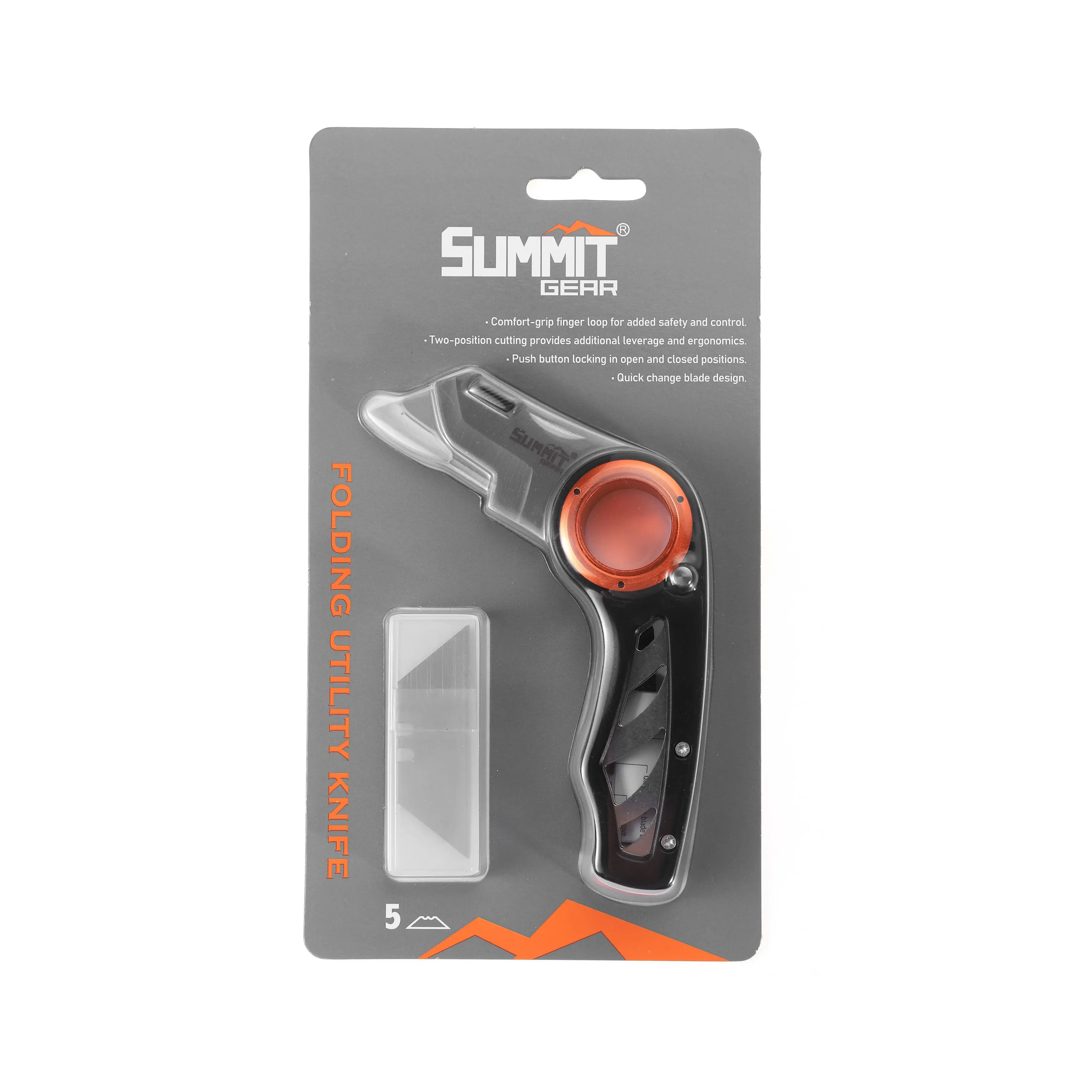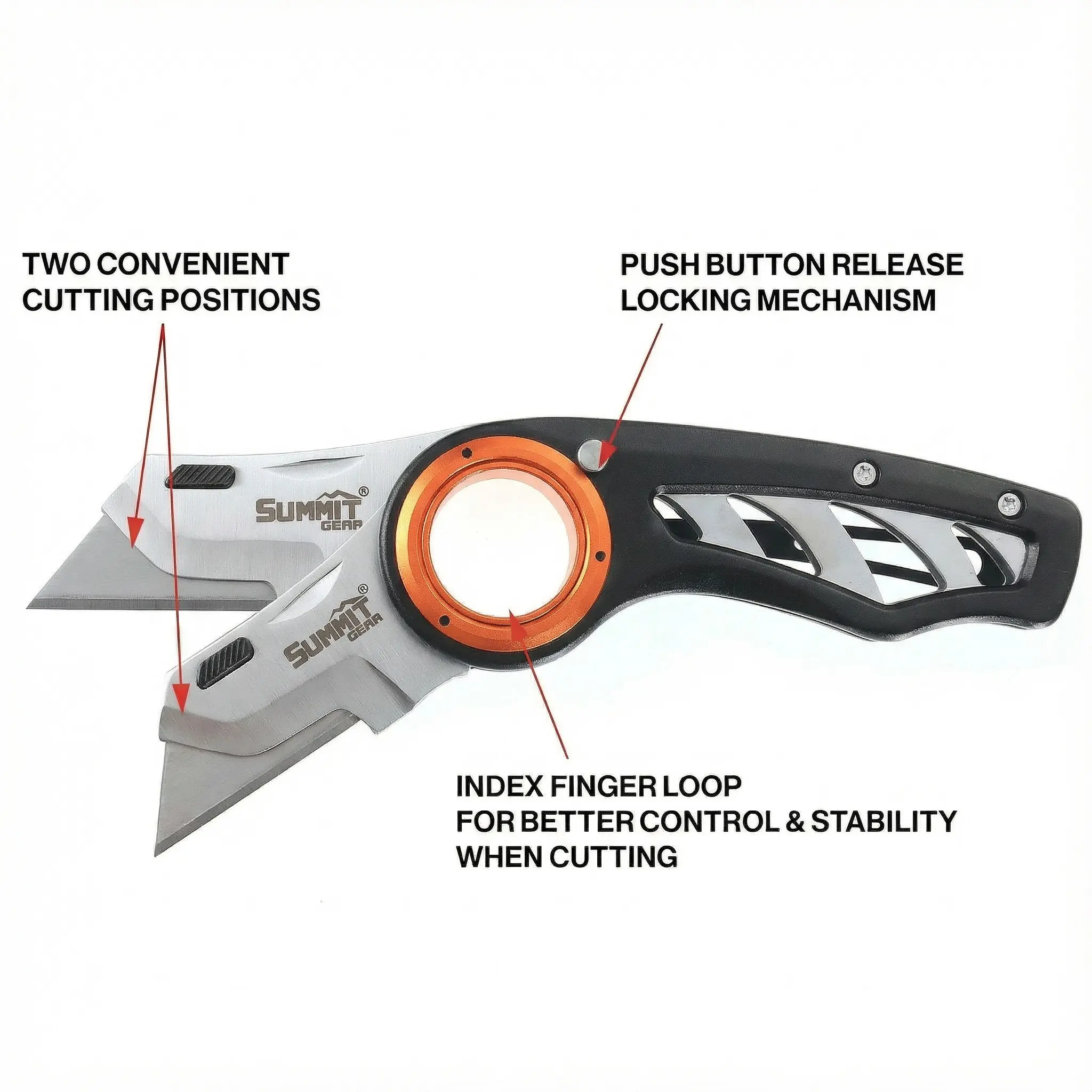 【Push-button locking mechanism】 allows easy blade control.