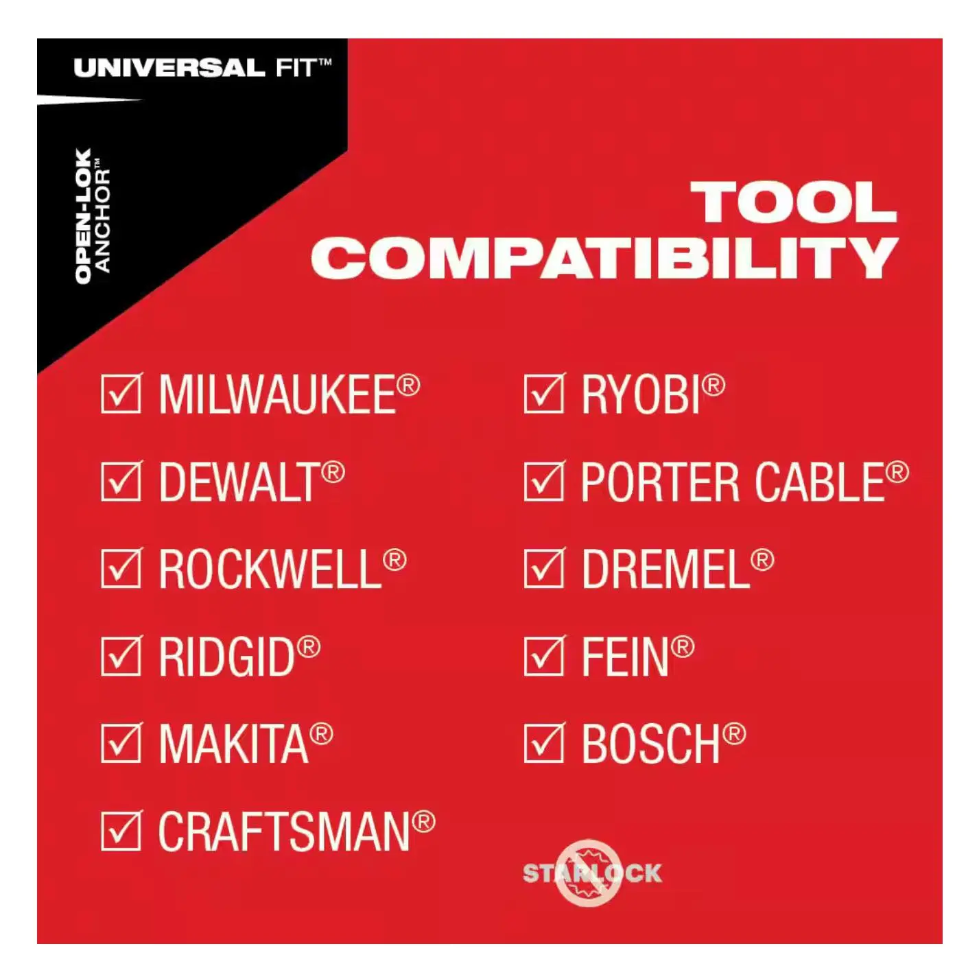 The MILWAUKEE Universal Fit OPEN-LOK 5-Piece Oscillating Multi-Tool Set provides users with an assortment of blades for use in wood and nails, wood, drywall, and PVC.