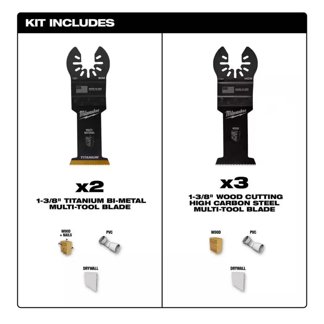 ·Includes: (2) 1-3/8 in. titanium enhanced bi-metal multi-material blades, (3) 1-3/8 in. HCS wood blades