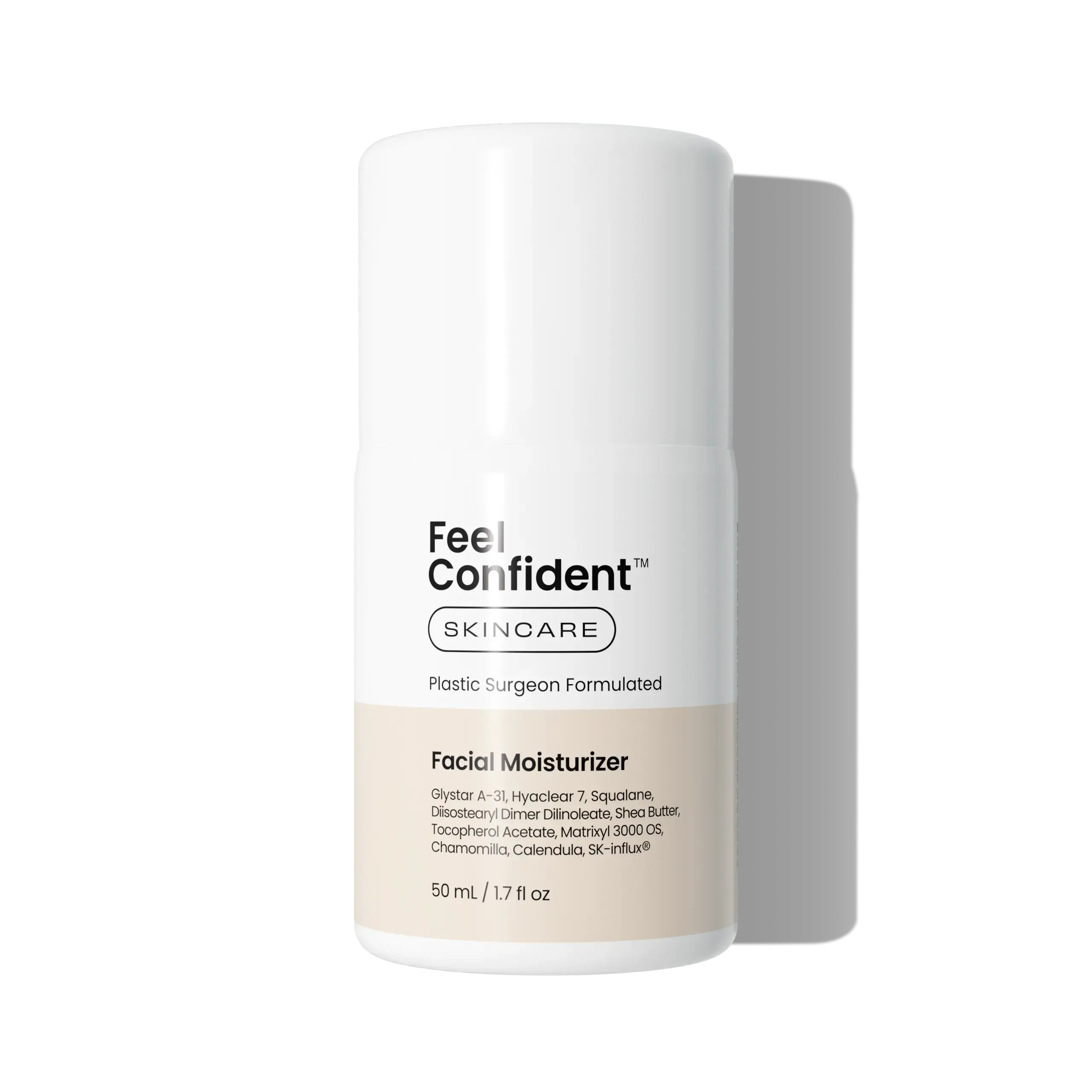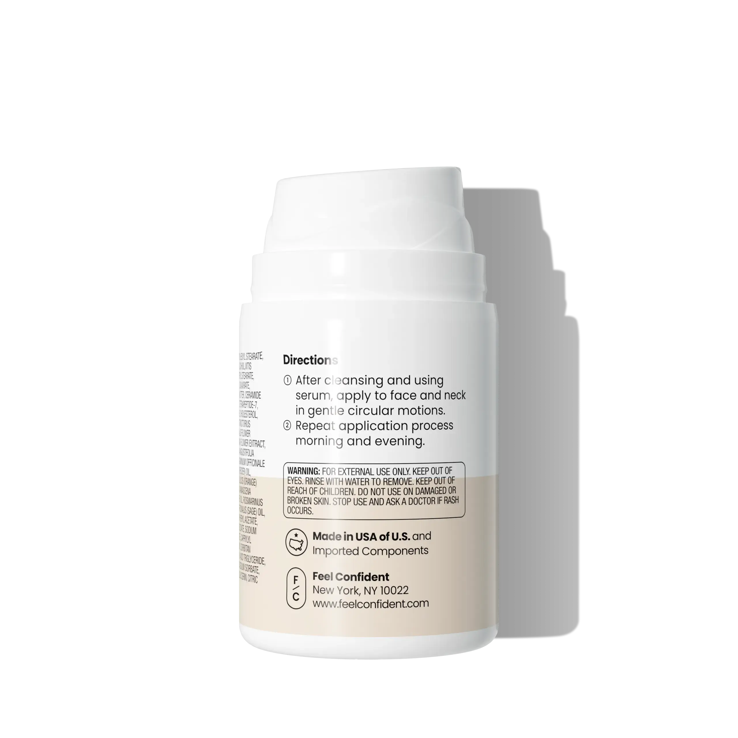 After cleansing and applying your HA serum, gently massage a pea-sized amount of Facial Moisturizer into your face and neck, morning and night. Seal it all in with your favorite sunscreen during the day for maximum skin protection.