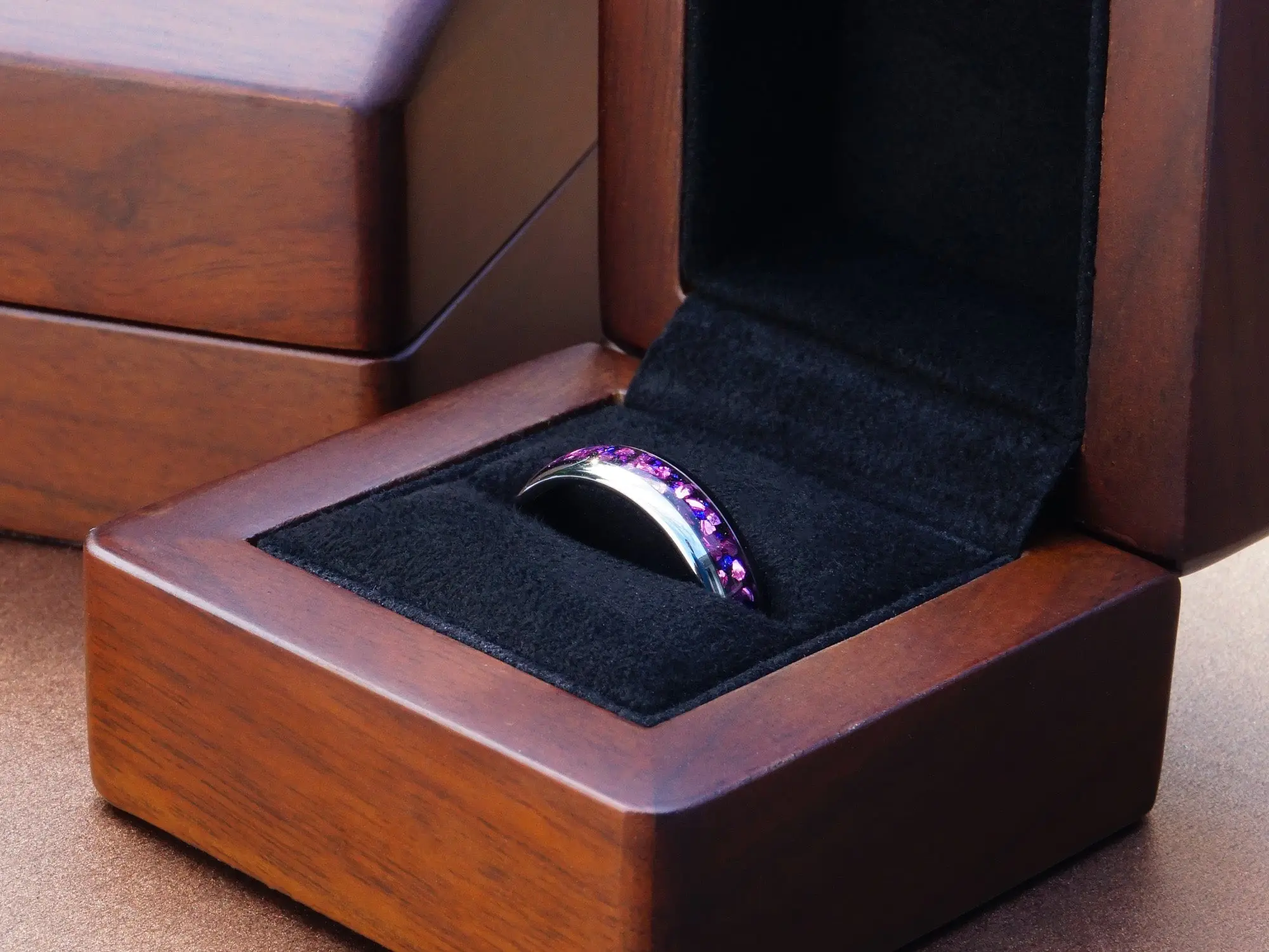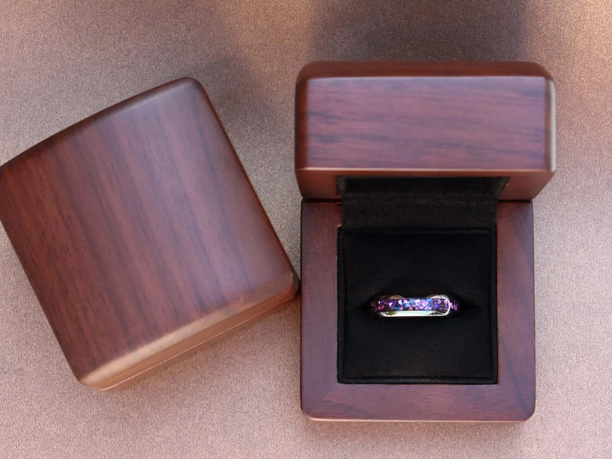 ·Hand-made walnut wooden ring box included