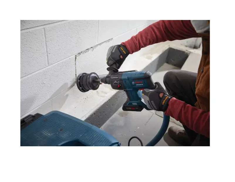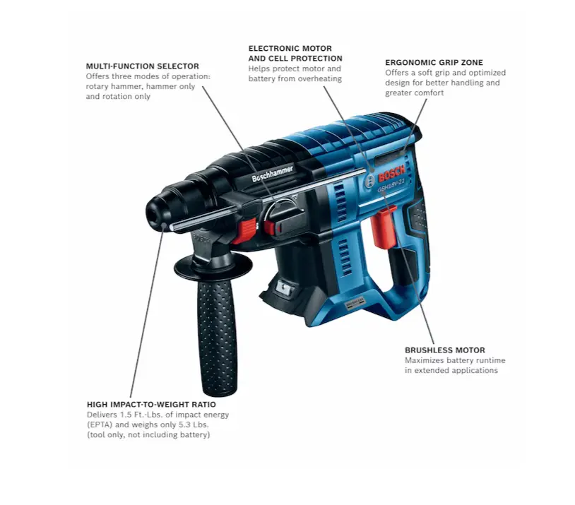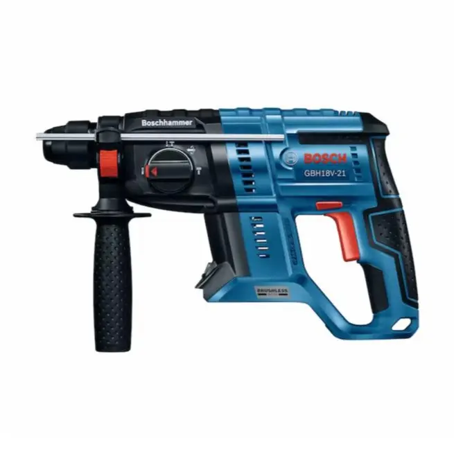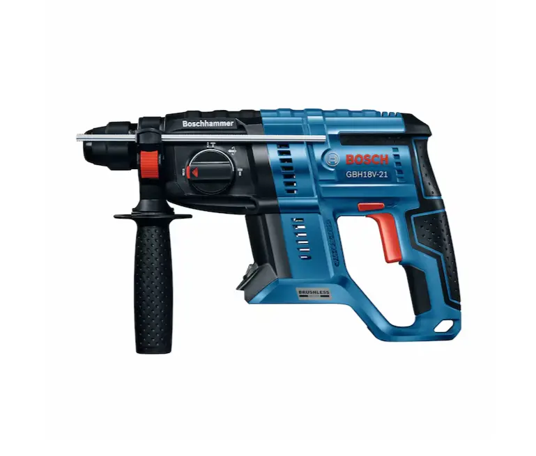 The Bosch GBH18V-21 is a lightweight, powerful cordless rotary hammer, perfect for drilling concrete, masonry, core cutting, and chiseling. With 1.5 Ft.-Lbs. of impact energy and 0-5,100 BPM, it’s ideal for demanding tasks. Its brushless motor optimizes battery runtime for extended performance.