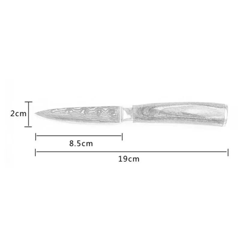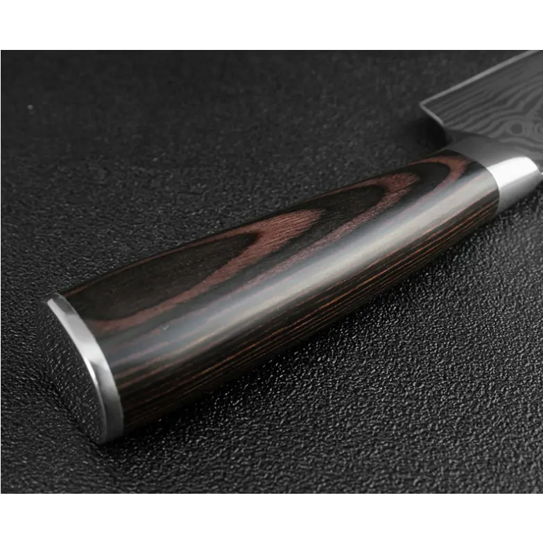 Tips: The blade is 7CR17 stainless steel, the surface of the laser Damascus pattern, very beautiful, good workmanship, razor-sharp, keep your kitchen away from the blunt knife, and enjoy your kitchen life!