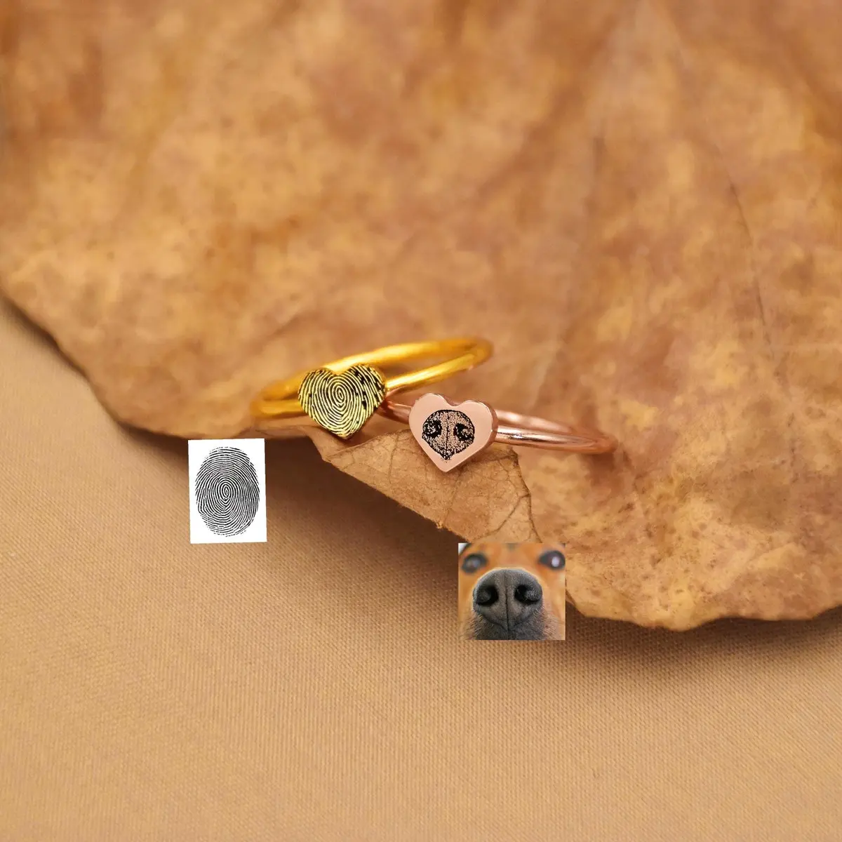Personalized, Stackable Ring, custom ring, delicate ring, Minimalist Ring, Thin Stackable Ring, statement ring, fingerprint ring, memorial ring, Heart Ring, Mother's Day Gifts, dogs nose