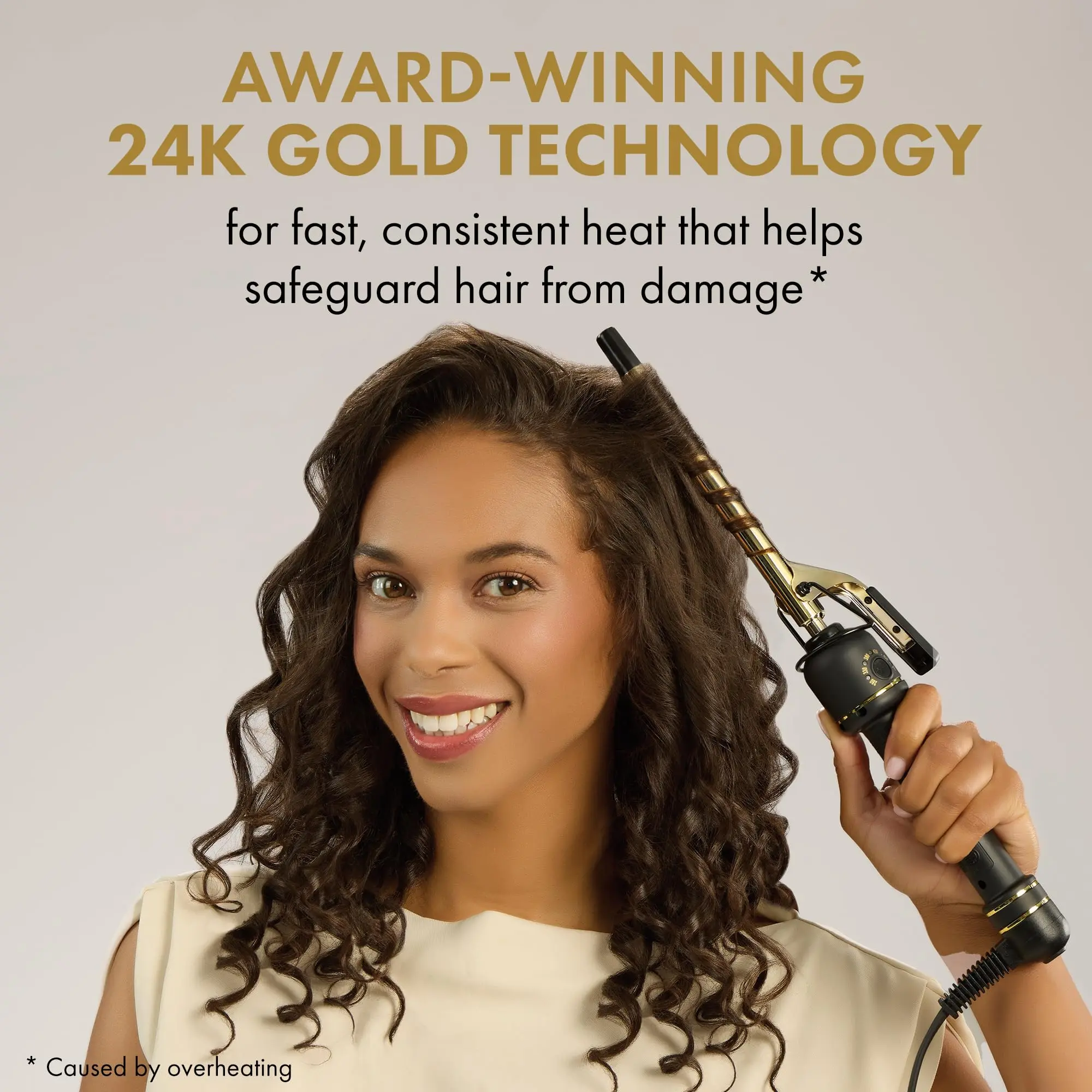 HOT TOOLS New and Improved 24K Gold Professional 1/2" Extended Barrel Curling Iron with Clamp for Super Tight Curls | 24K Gold Technology for Long-Lasting Results & Longer Barrel for Easy Styling