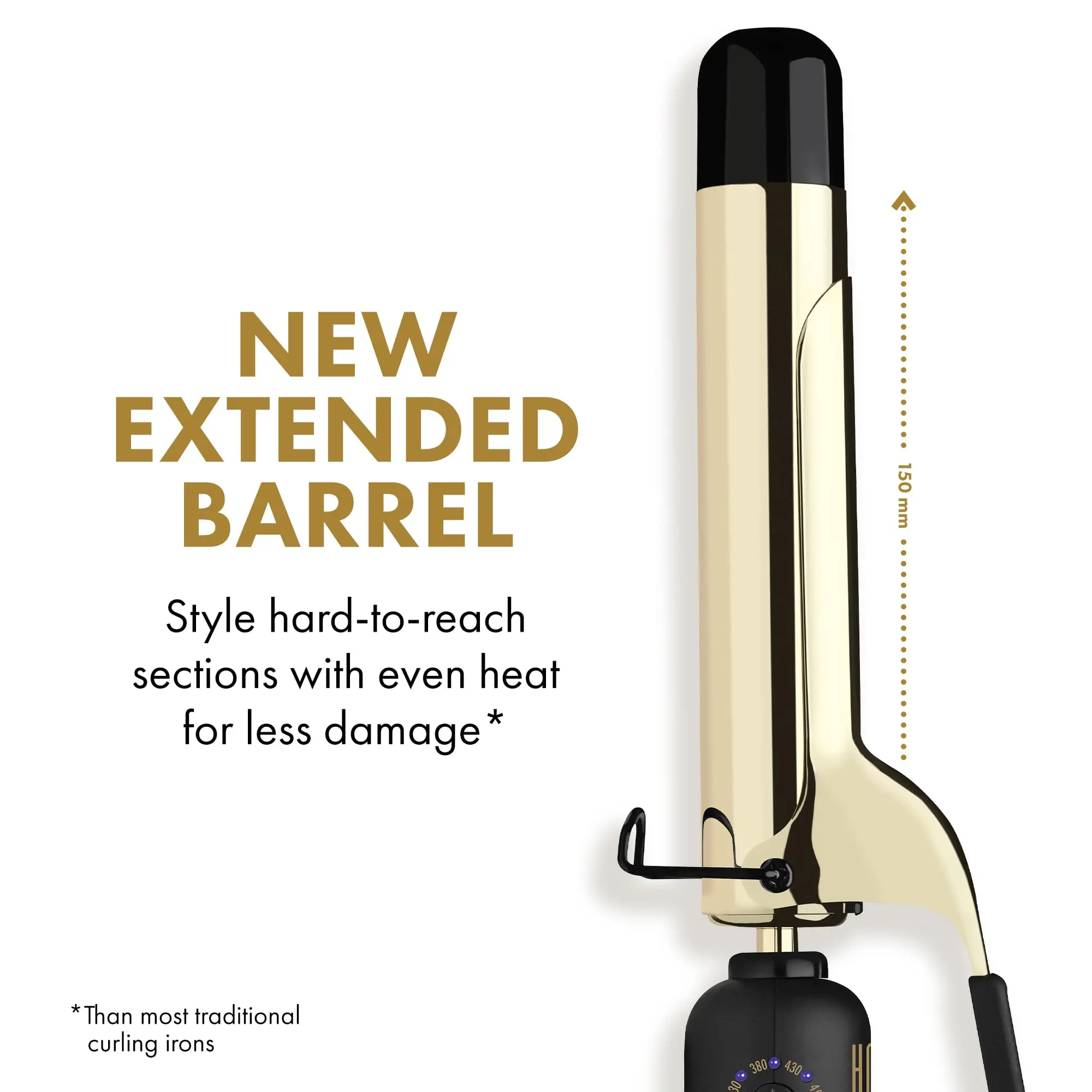 HOT TOOLS New and Improved 24K Gold Professional 1.25" Extended Barrel Curling Iron with Clamp for Tousled Curls | 24K Gold Technology for Long-Lasting Results & Longer Barrel for Easy Styling