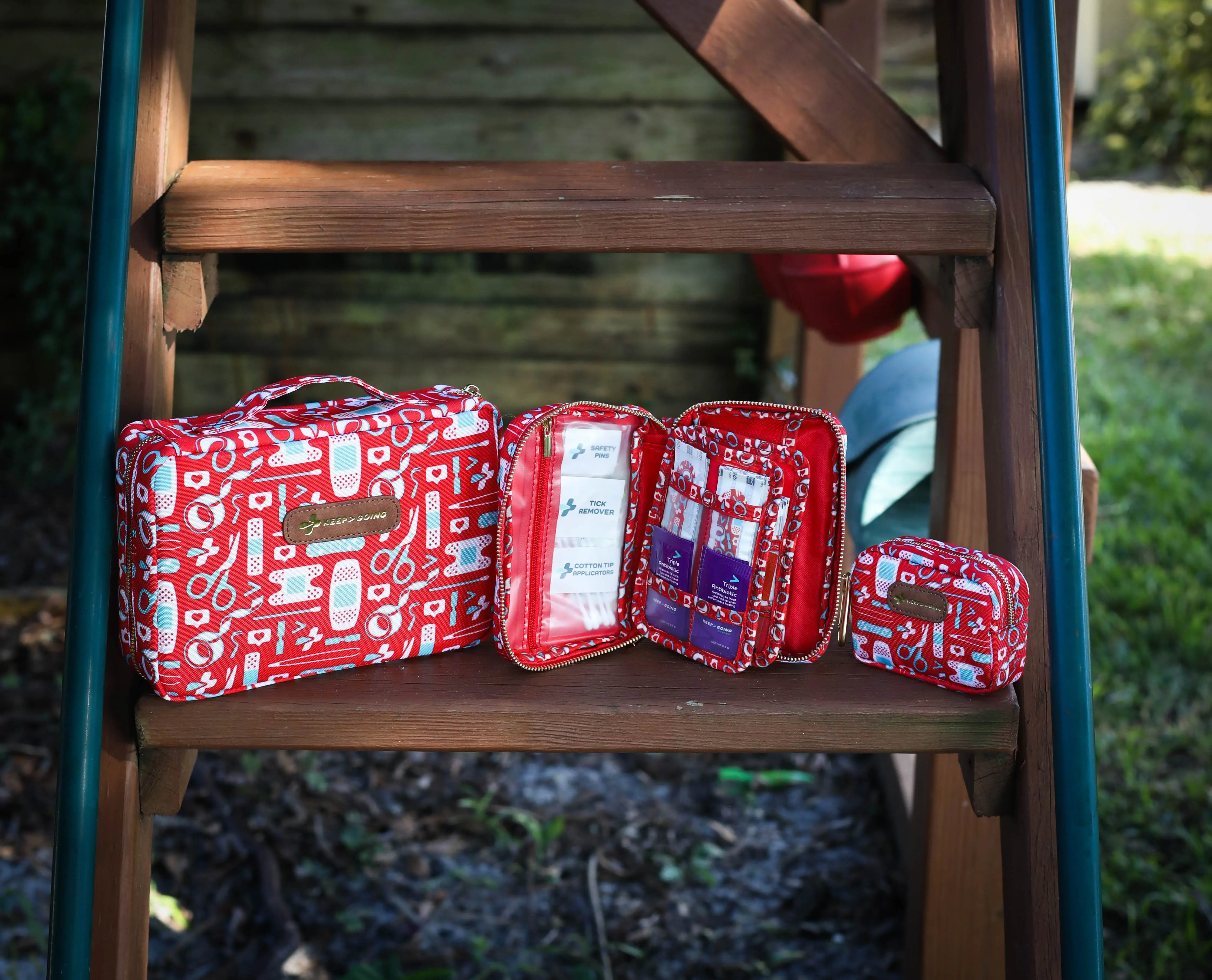 Most first aid kits are bulky and boring. The KEEP>GOING Bundle is stylish, compact, and ultra-organized. It gives you the perfect kit for every situation!