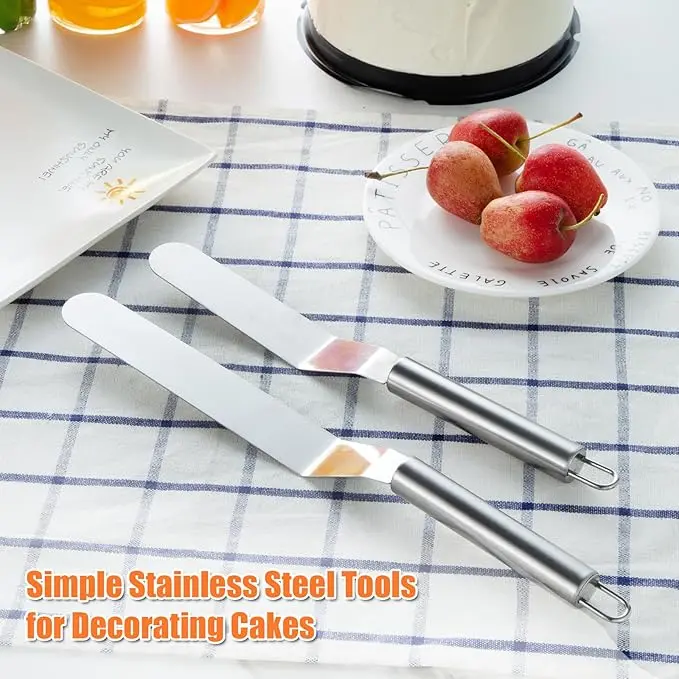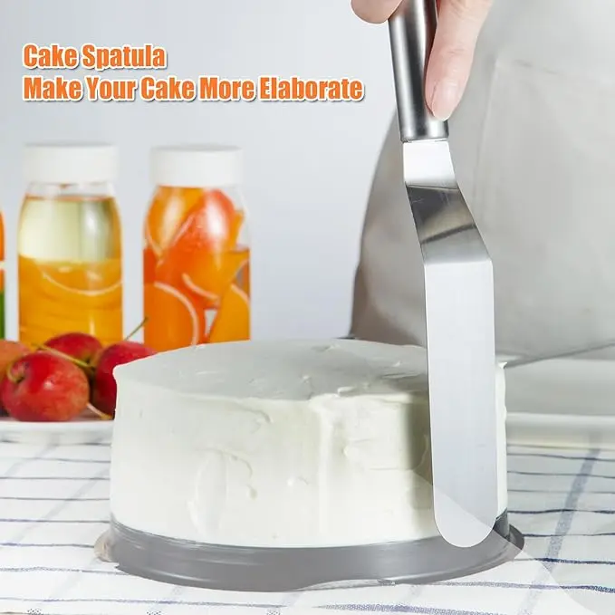 ·The offset spatula Of 6 inch and 8 inch blade Suitable for cakes of different sizes. angled blade (in the case of an offset spatula), allows you to reach the edges and corners of a cake more easily than a straight - bladed tool.