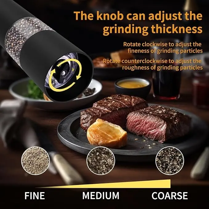 Upgrade your kitchen with this practical and efficient Electric Salt and Pepper Grinder Set, perfect for any cooking task.