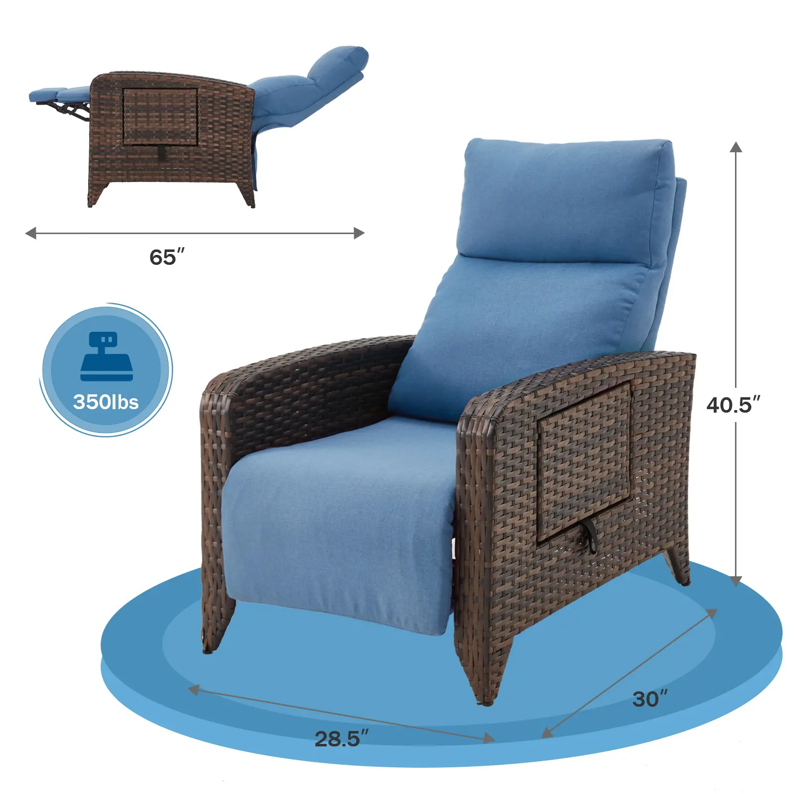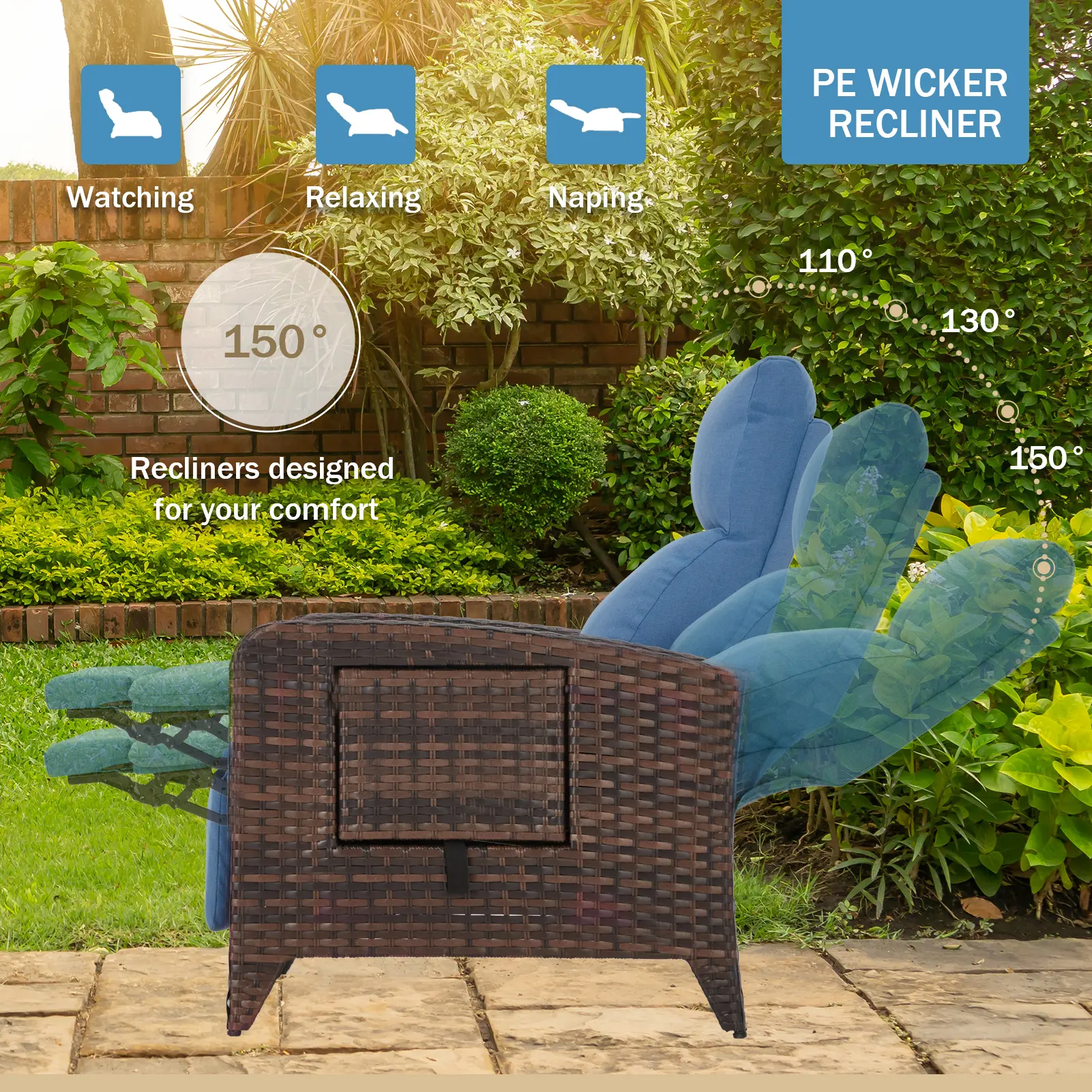 Crafted from premium PE wicker, this outdoor recliner resists cracking, fading, and UV damage. Built to withstand sun, rain, and humidity—season after season.