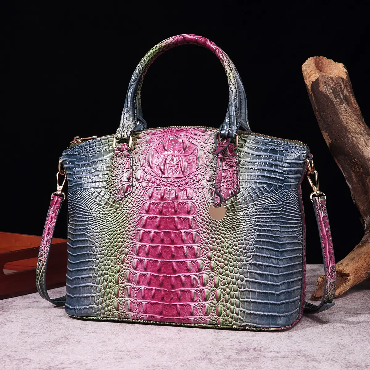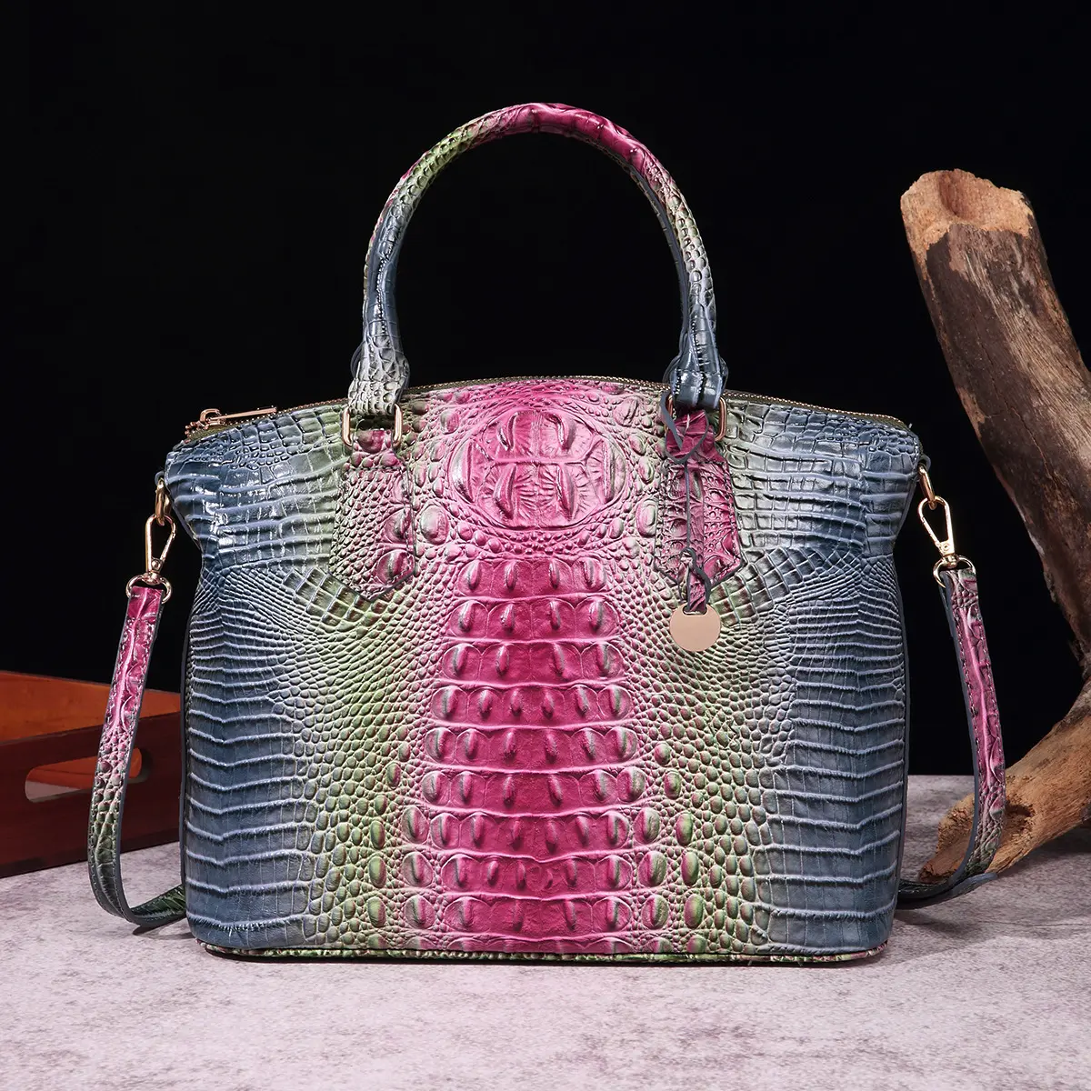 Handheld Crossbody Vintage Women's Bag with Multi-color Crocodile Pattern Brahmin